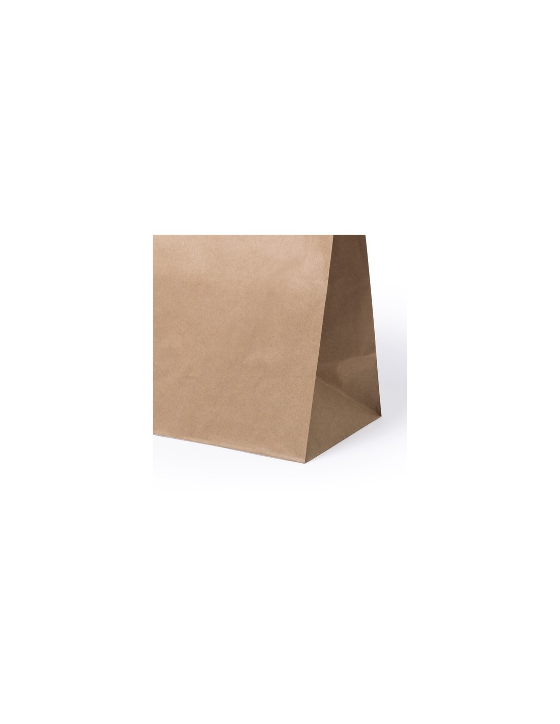 Bolsa en papel de acabado natural de 80g/m2 con asas cortas reforzadas y fuelle. Resistencia hasta 5kg de peso. Composition : Papel Reciclado 80 g/ m2.