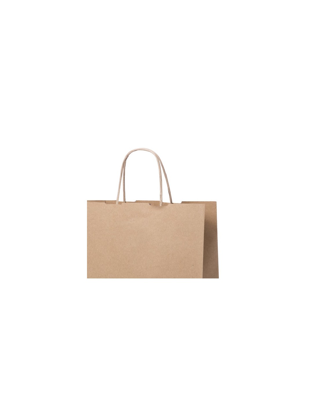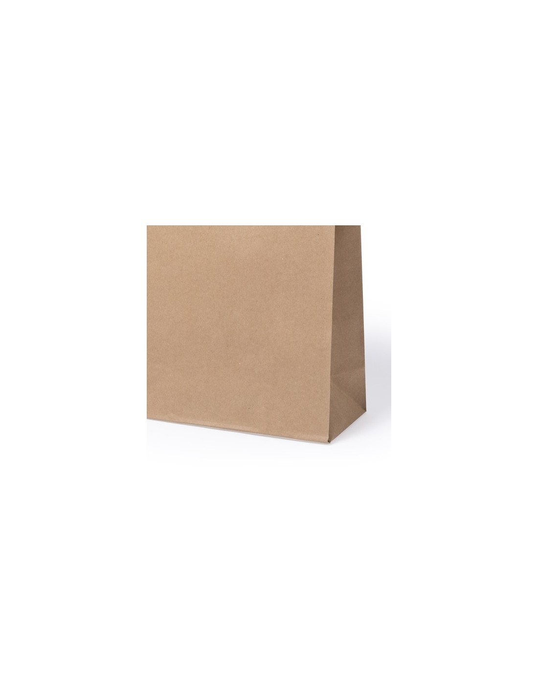 Bolsa en papel de acabado natural de 100g/m2 con asas cortas reforzadas y fuelle. Resistencia hasta 7kg de peso. Composition : Papel Reciclado 100 g/ m2.