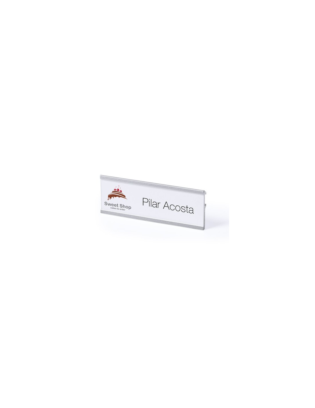 Identificador con marcos de aluminio en acabado anodizado. Parte trasera con pinza de enganche para una fijación segura. Composition : Aluminio.