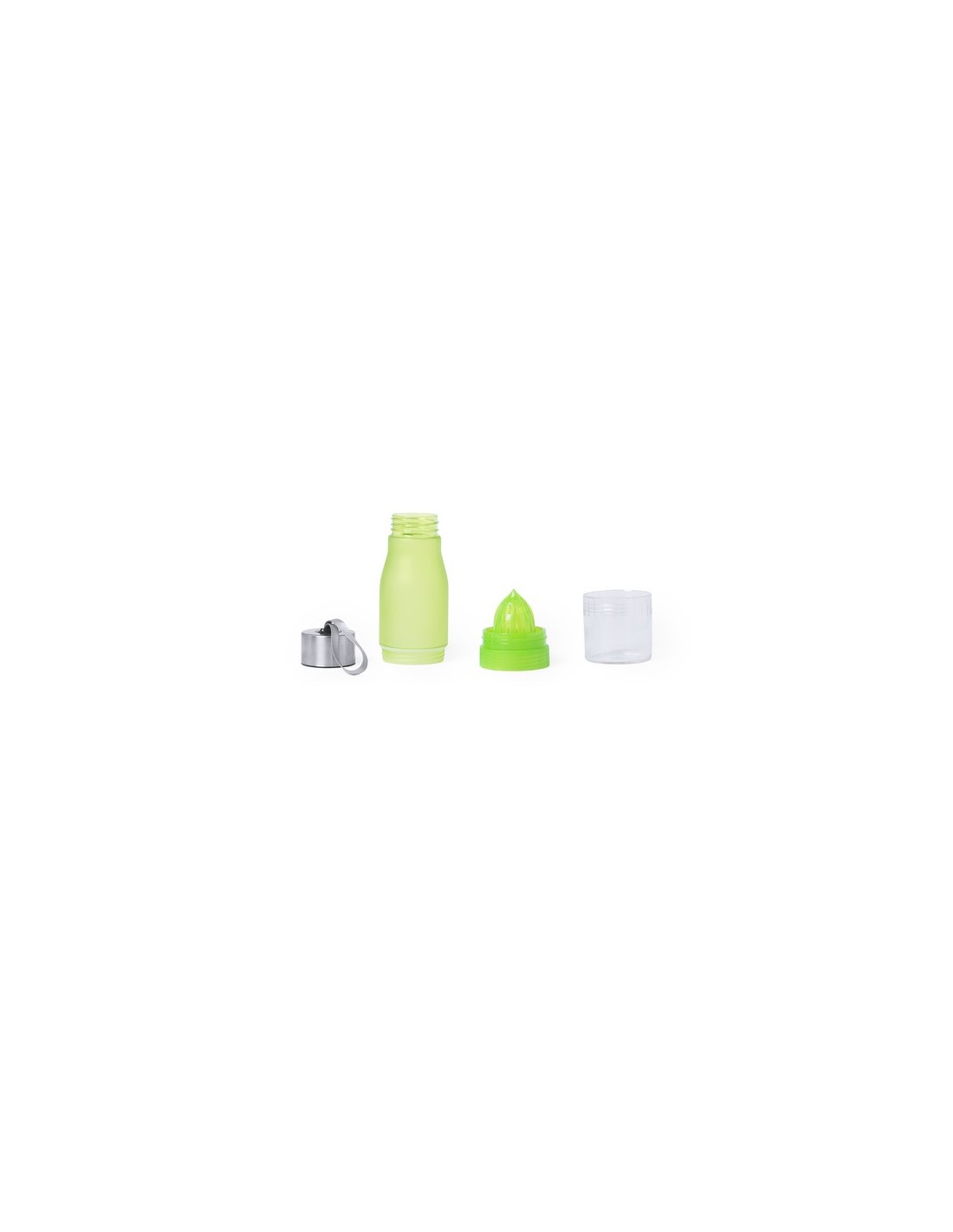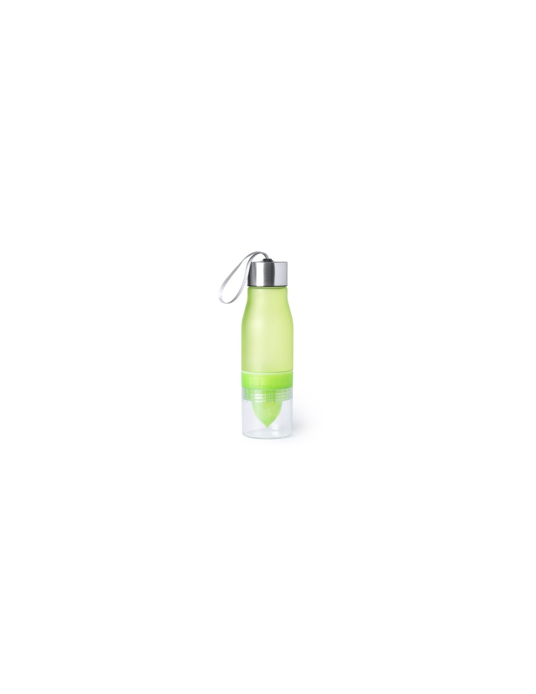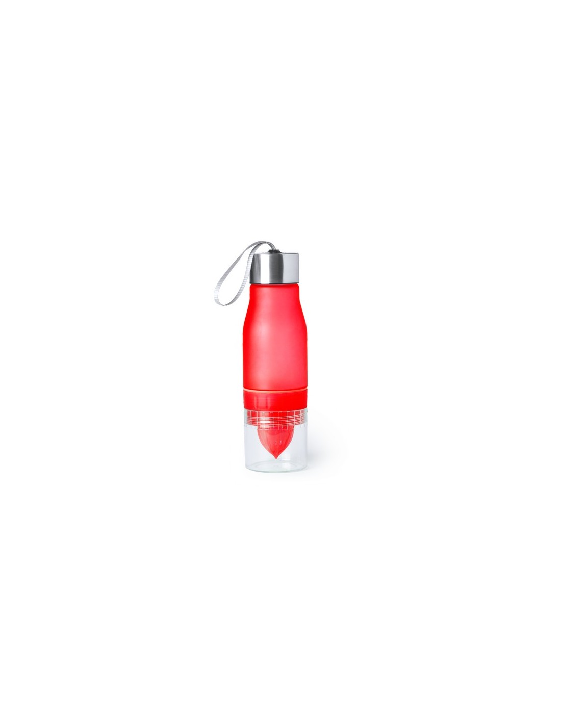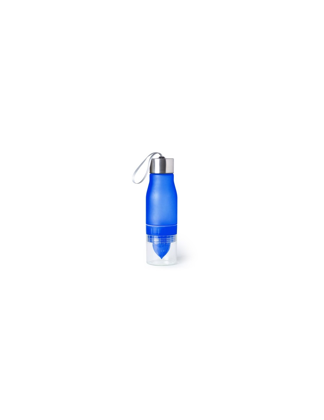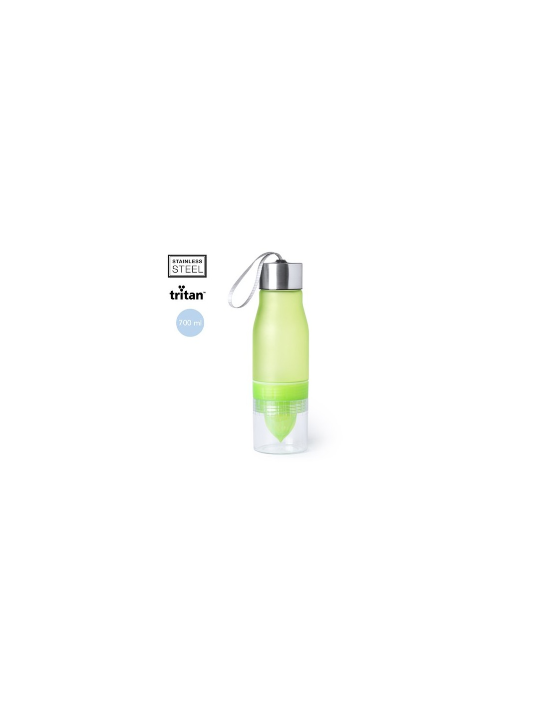 Original bidón de 700ml de capacidad en material tritán resistente al calor y libre de BPA. Incluye compartimento en base con exprimidor de cítricos para dar sabor al agua. Con dosificador, tapón a rosca y cinta de transporte. Disponible en variada gama de colores y presentado en caja individual. 700 ml Composition : Tritan/ Acero Inox.