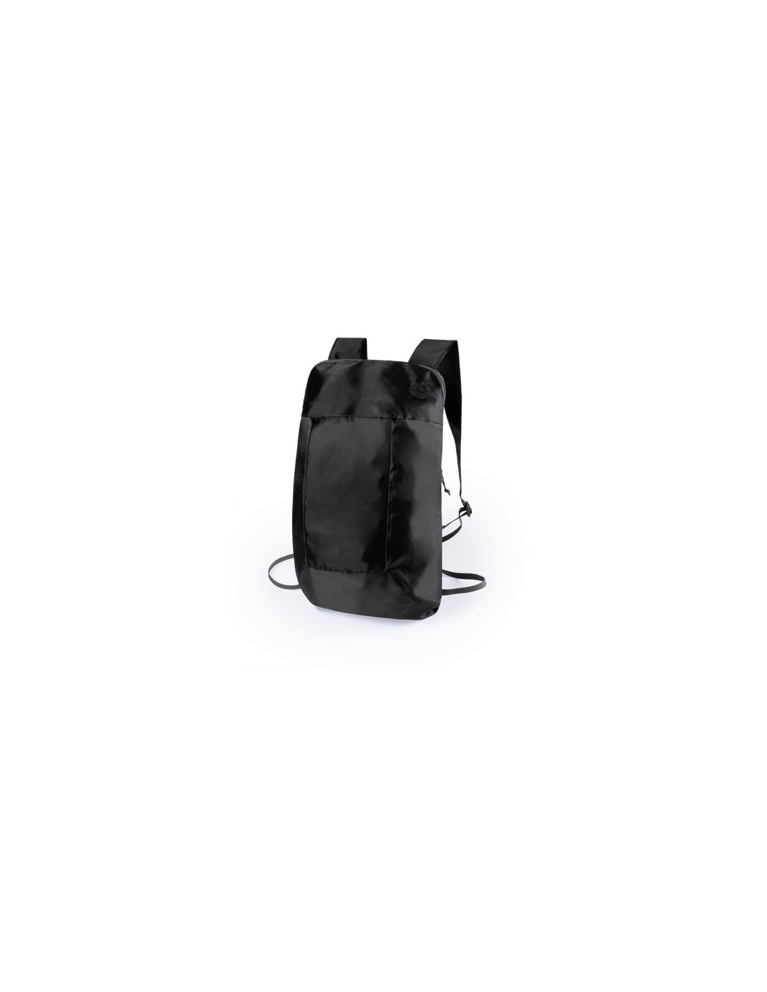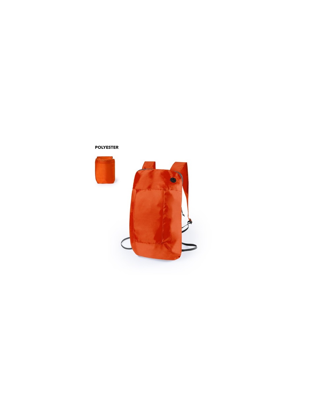 Mochila plegable en suave poliéster 210D de alegres colores, con cierre de cremallera y salida de auriculares. Con esquinas reforzadas, cintas de hombro regulables y accesorios en color negro. Plegado de pequeño tamaño. Composition : Poliéster 210D.