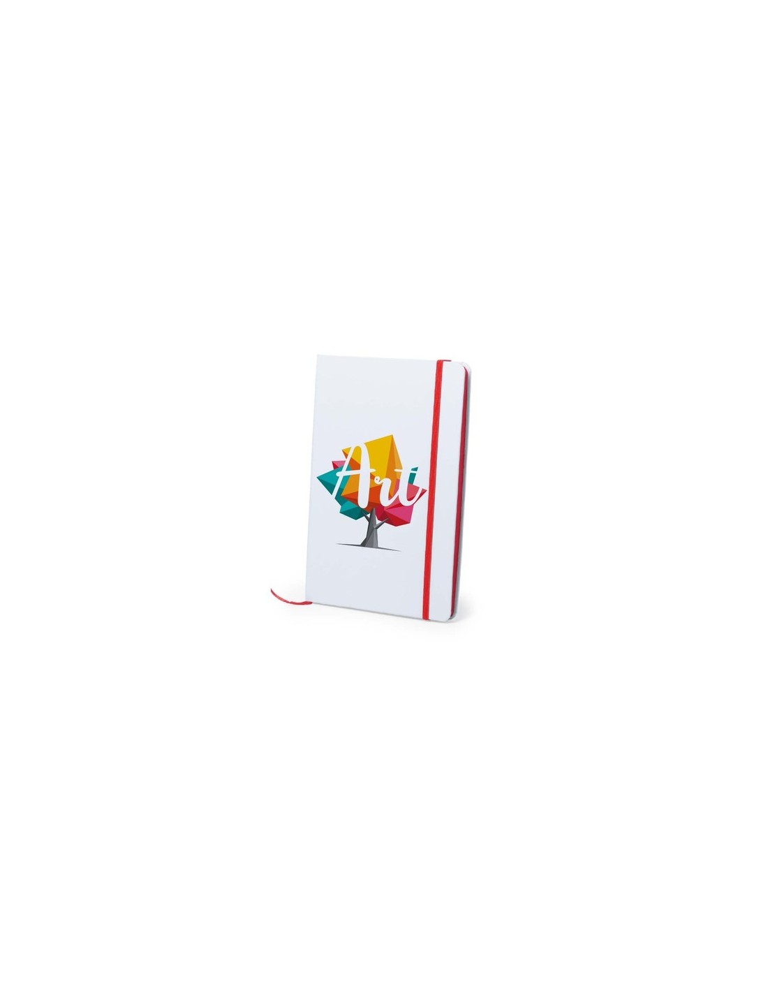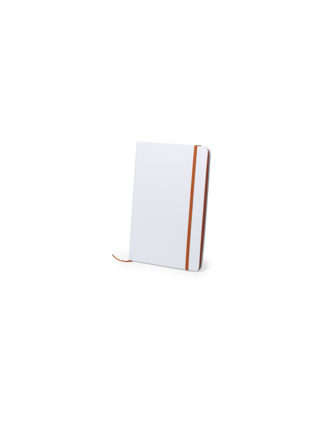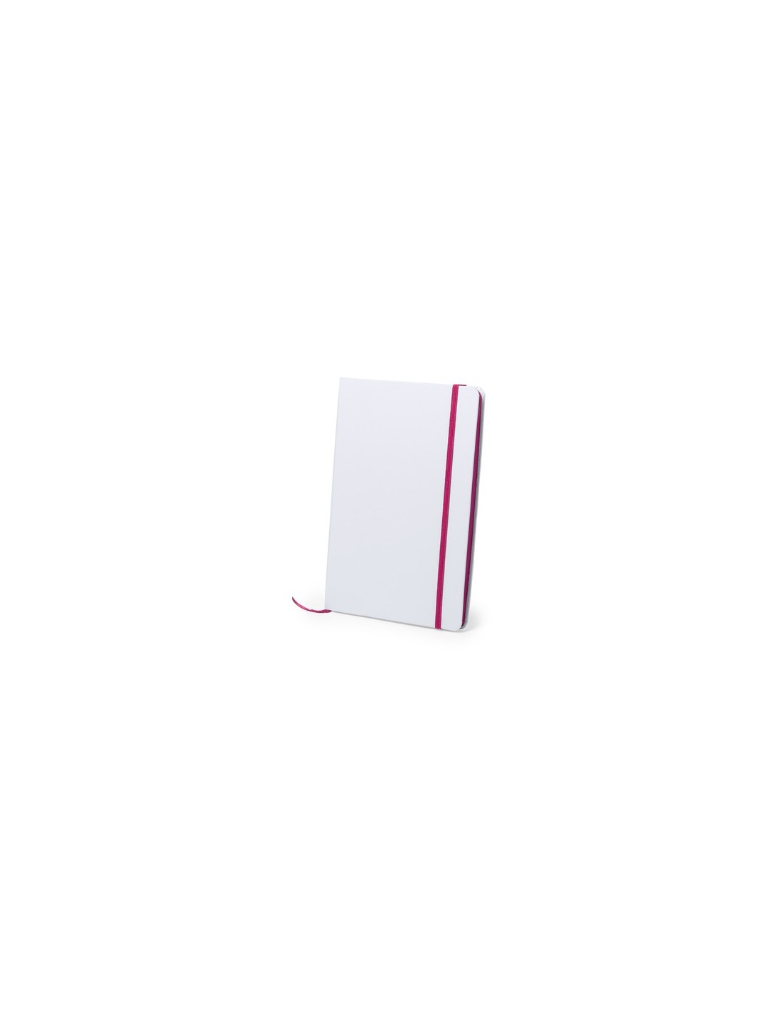 Bloc de notas con tapas rígidas de suave tacto acabadas en color blanco. De 100 hojas lisas con lomo en divertidos colores, elástico de sujeción y marcapáginas de tela a juego. Portada Rígida. 100 Hojas Composition : Cartón.