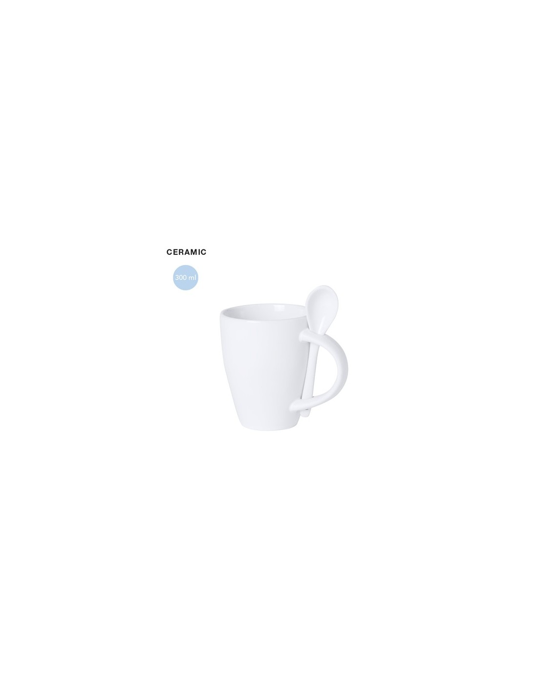 Taza de cerámica de 300ml de capacidad en color blanco. Con cuchara de cerámica a juego integrada en asa y presentada en caja individual.Disponible manual de instrucciones en español e inglés. 300 ml Composition : Cerámica.