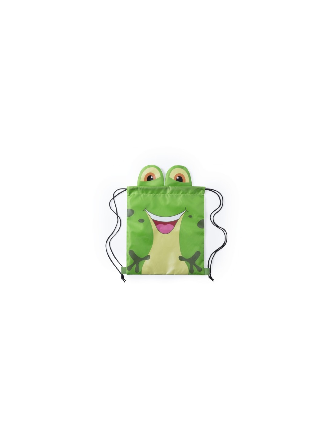 Mochila de cuerdas plegable para niño, en suave poliéster 210T de originales diseños con animalitos. Con cuerdas autocierre en color negro y esquinas reforzadas. Plegado de pequeño tamaño. Composition : Poliéster 210T.