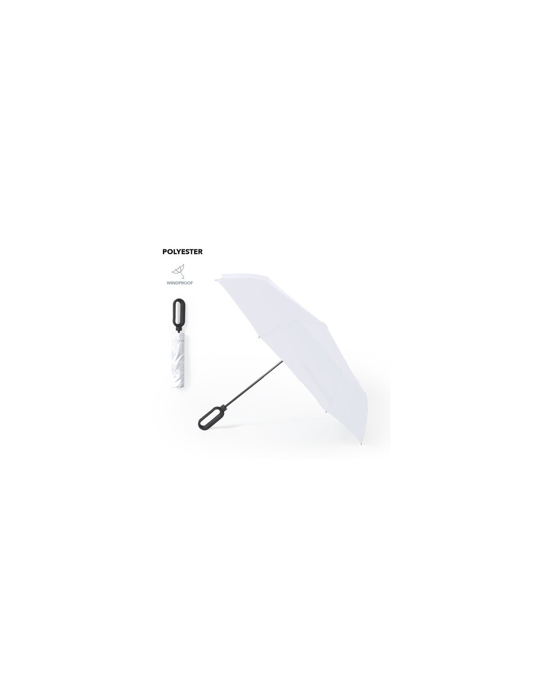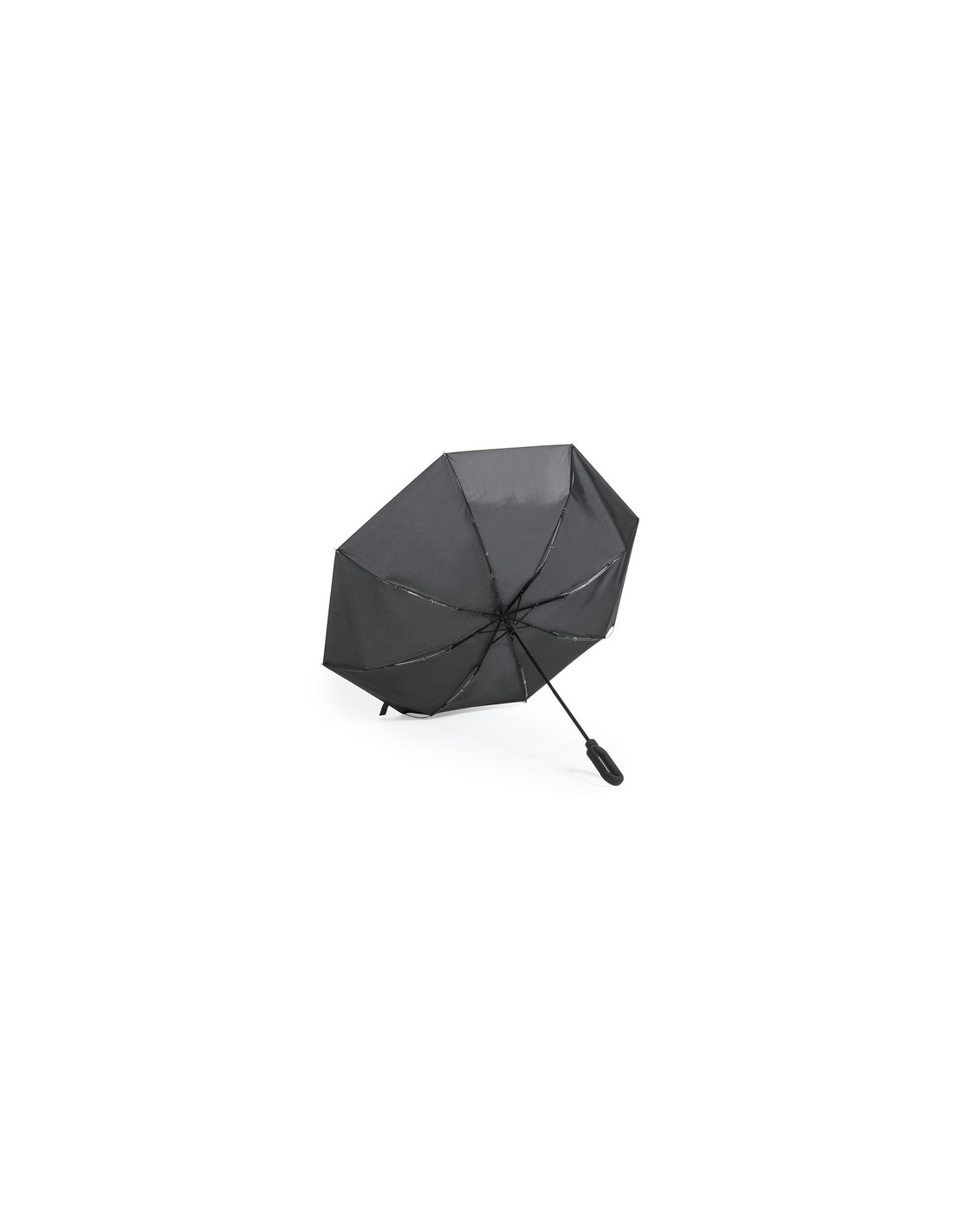 Paraguas plegable de 8 paneles en variada gama de colores. De 100cm de diámetro, apertura manual, con sistema antiviento y en resistente material pongee. Con varillas de fibra en color negro, cierre de velcro y mango ergonómico con mosquetón de enganche integrado. Presentado en funda individual a juego. 21". Sistema Antiviento. Funda Pongee Composition : Pongee 190T. Varillas Fibra de Vidrio.