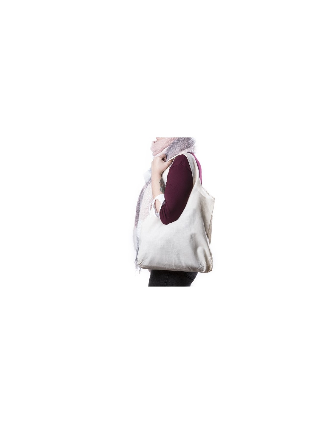 Bolsa en material 100% algodón con acabado en color natural. Con originales asas para hombro y de acabado cosido. Resistencia hasta 7kg de peso. Composition : 100% Algodón 105 g/ m2.