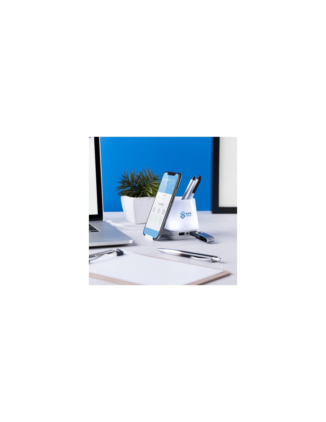 Original lapicero con puerto USB integrado. Retroiluminado por luz led, con 2 posiciones de iluminación y cuerpo en elegante color blanco para fácil marcaje. Incluye 4 puertos USB 2.0. Presentado en caja individual. Luces Led. 2 Posiciones de Luz. 4 Puertos. USB 2.0