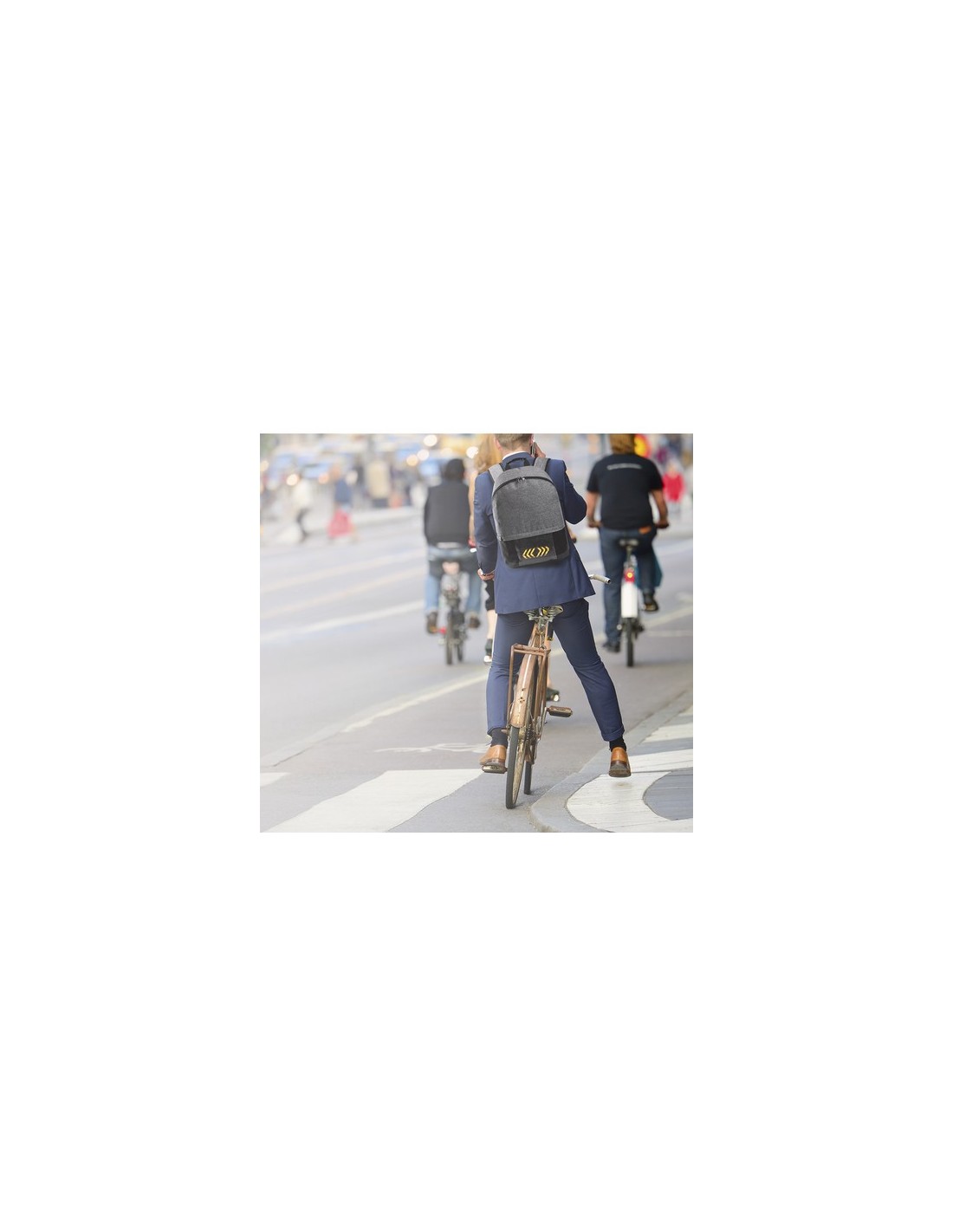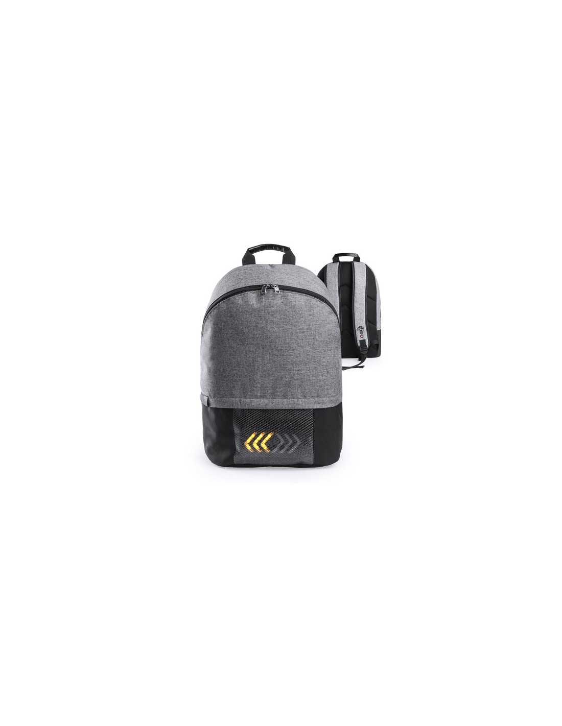 Mochila con indicadores, en resistente poliéster 600D. Indicadores luminosos en la base, con señalización controlada desde las cintas de hombros de la mochila. Bolsillo principal con doble tirador e interior con bolsillo acolchado para ordenador portátil de hasta 15 pulgadas. Espalda y cintas acolchadas. Conexión micro USB -cable incluido-. Requiere de un powerbank -no incluido- para el funcionamiento de las luces. Luces Led Intermitentes. Bolsillo Acolchado para Portátil. Parte Trasera y Cintas Acolchadas. Conexión USB Composition : Poliéster 600D.