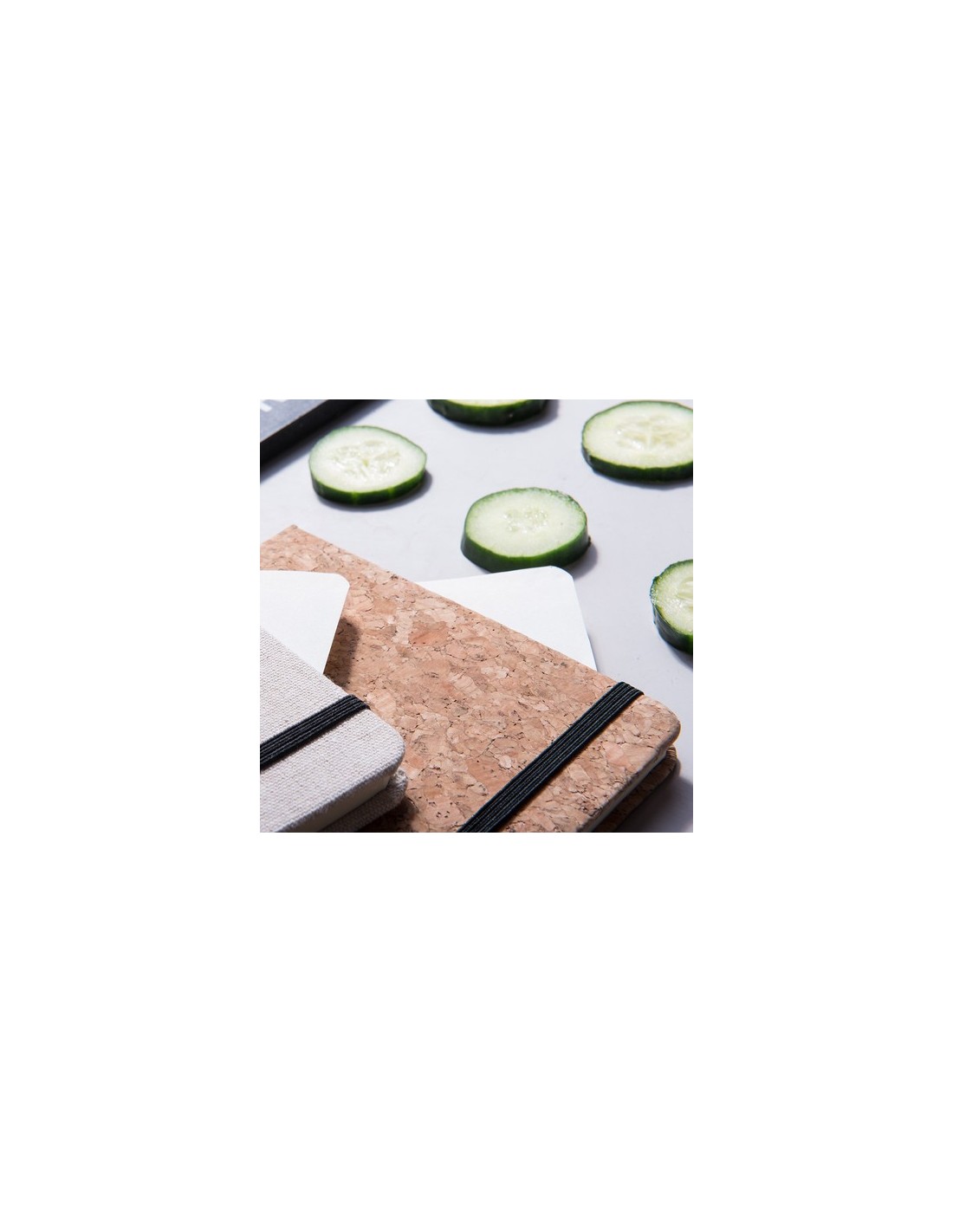 Bloc de notas ecológico en corcho natural y con tapas rígidas. De 80 hojas lisas con acabado natural, elástico de sujeción y marcapáginas de tela en sobrio color negro. Portada Rígida. 80 Hojas Composition : Corcho.
