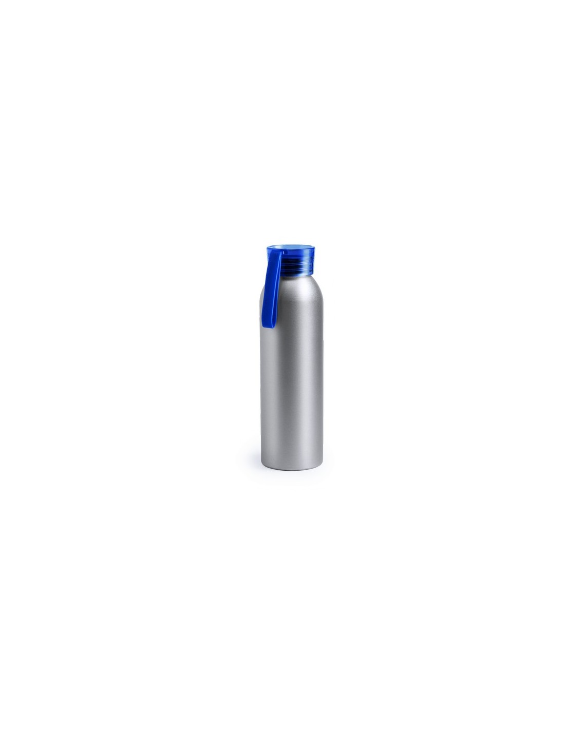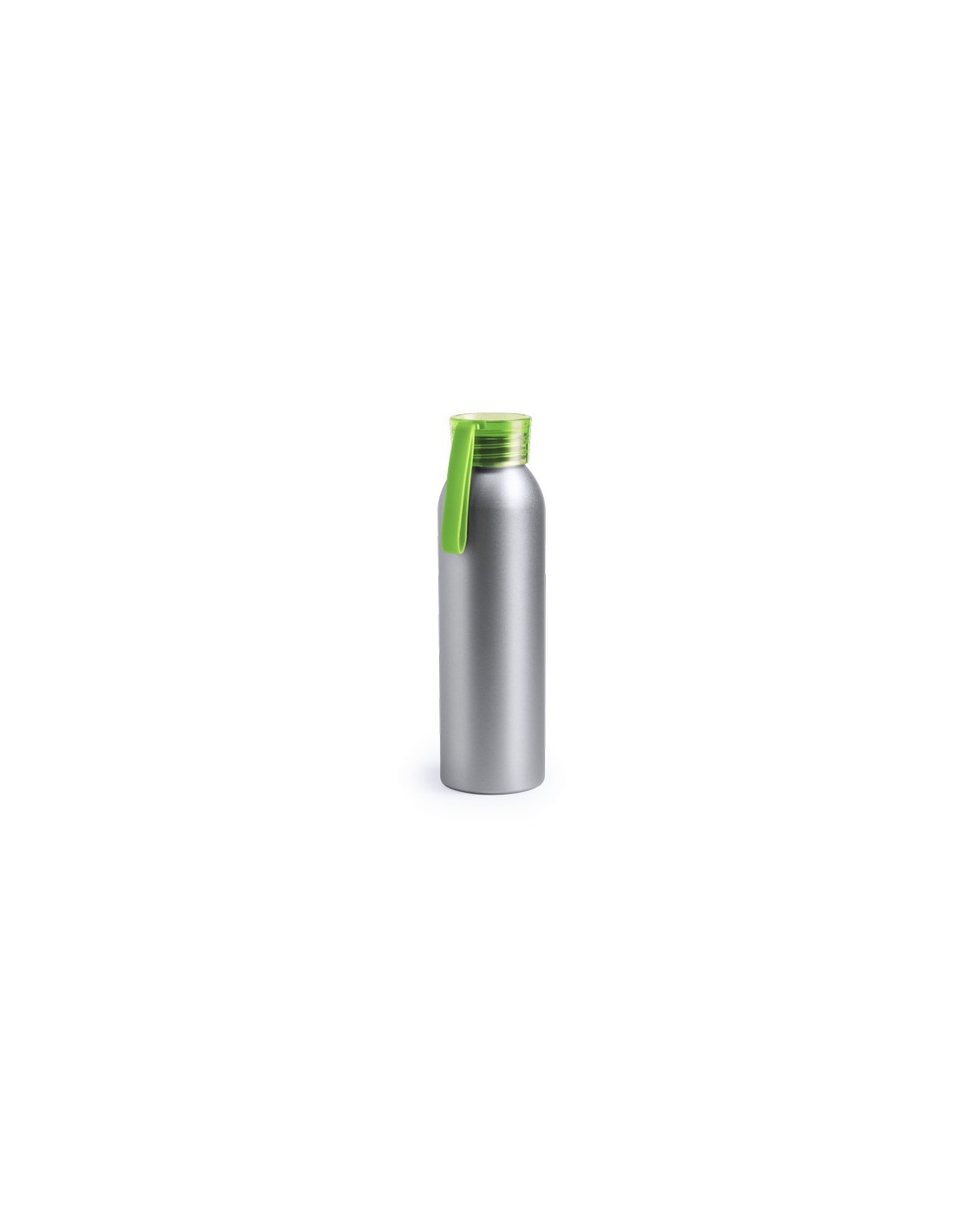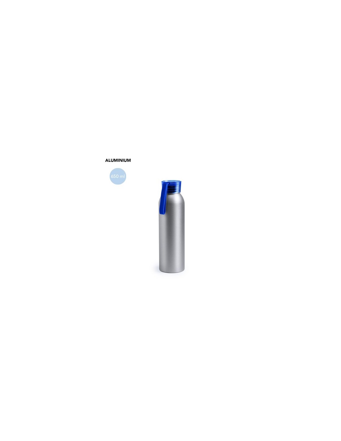 Bidón de aluminio de 650 ml de capacidad. Cuerpo en color plateado, con tapón de seguridad a rosca en variada gama de colores transparentes. Cinta de transporte en material TPR a juego. 650 ml Composition : Aluminio.