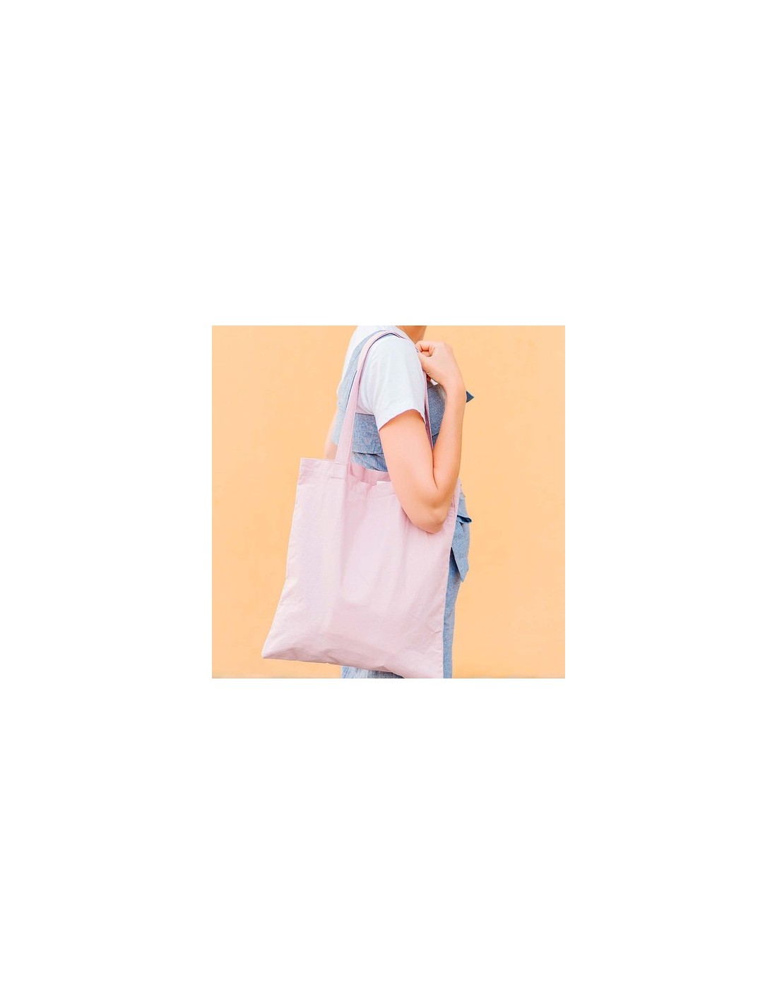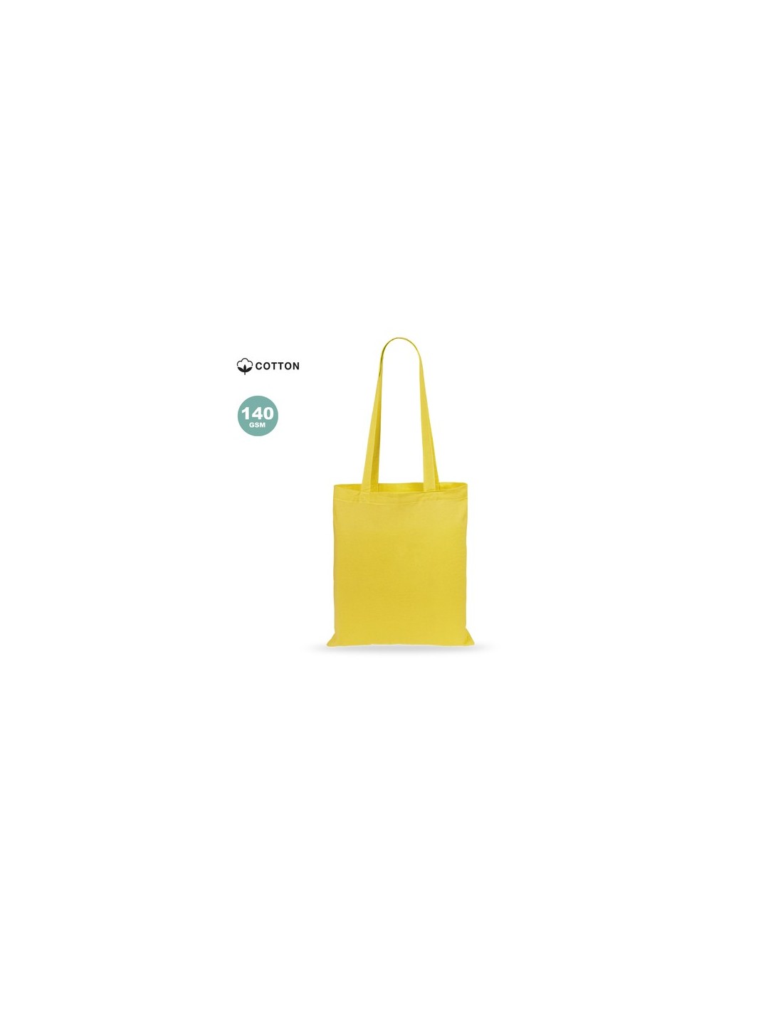 Bolsa fabricada en suave 100% algodón de 140g/m2. Con asas largas reforzadas de 70cm disponible en una amplia gama de colores. Resistencia de hasta 7kg de peso. Composition : 100% Algodón 140 g/ m2.