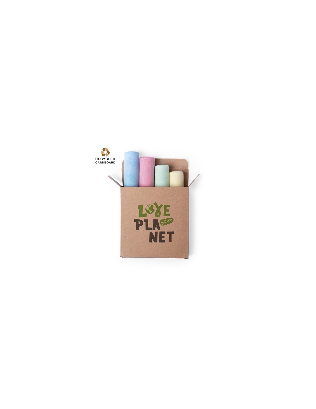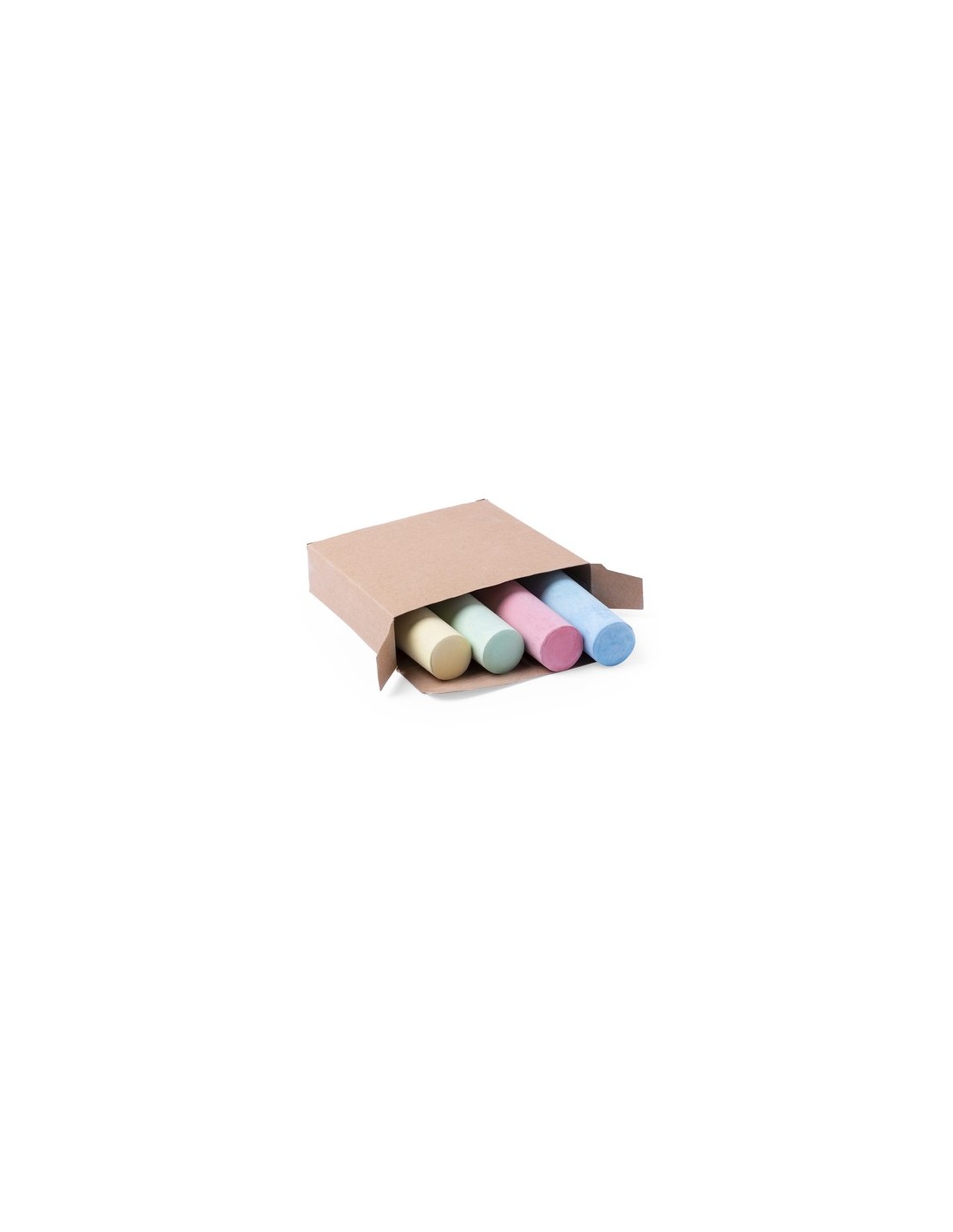 Caja de tizas tamaño XL. Estuche en cartón reciclado, con 4 tizas en colores azul, rojizo, verde y amarillo. 4 Tizas Composition : Cartón Reciclado.