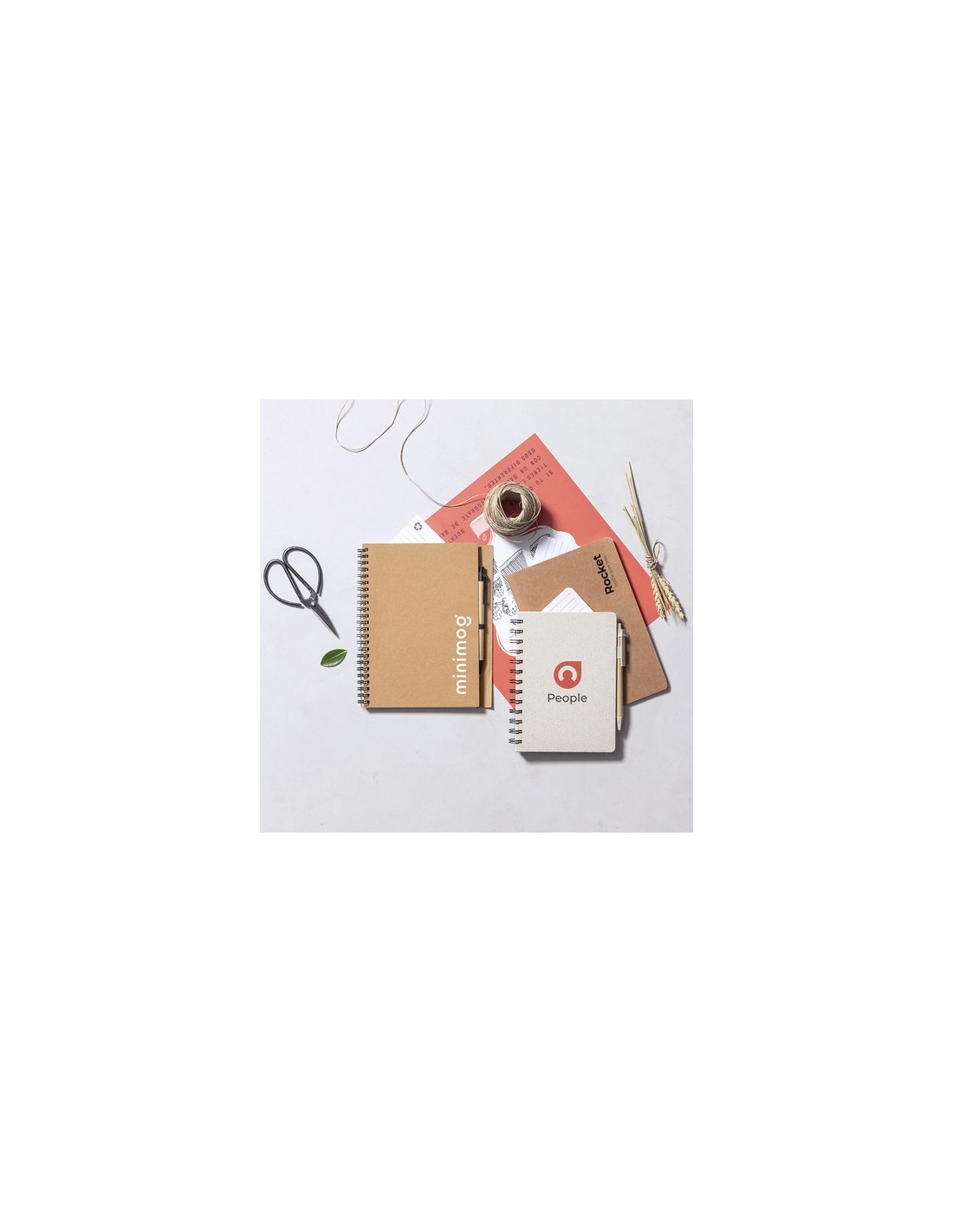 Original libreta con tapas de cartón reciclado y acabado cosido a juego en el lomo. Incluye 60 hojas con disposición a una raya. 60 Hojas Composition : Cartón Reciclado.