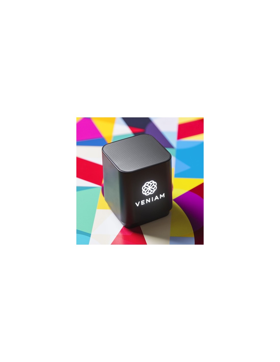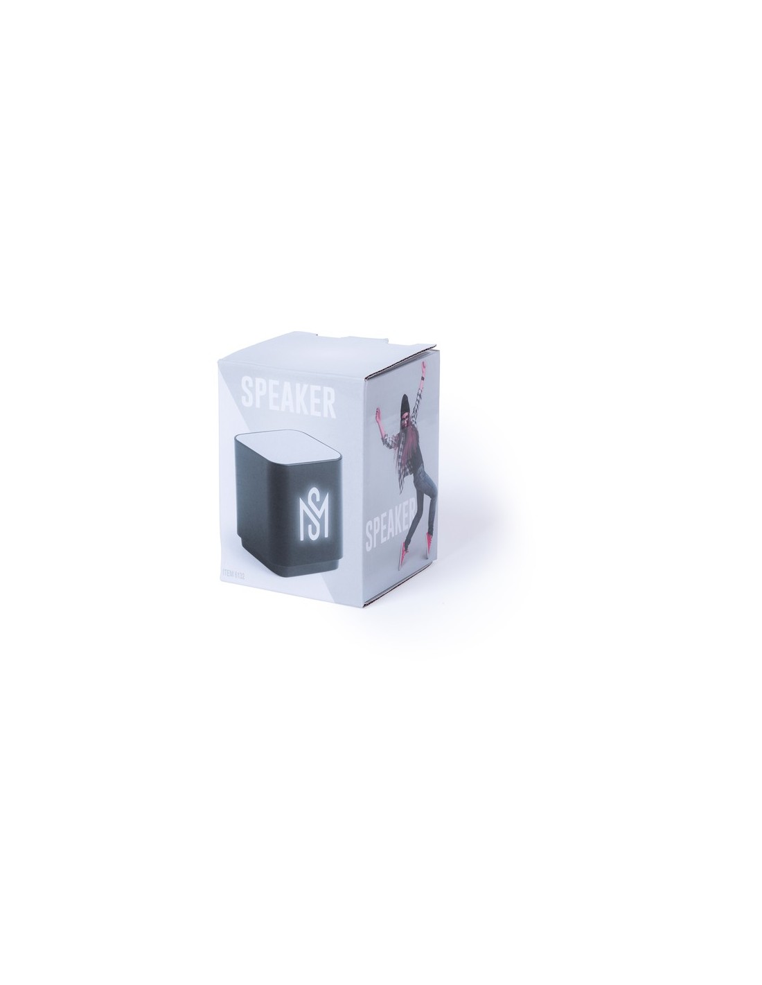 Altavoz con conexión Bluetooth, luz led interior y cuerpo especialmente diseñado para marcaje en láser, iluminando así el logotipo. Con 3W de potencia y función manos libres. Recargable mediante cable USB -incluido- y presentado en una atractiva caja de diseño. Luces Led. Conexión Bluetooth. Potencia Sonido 3W. Batería 400 mAh