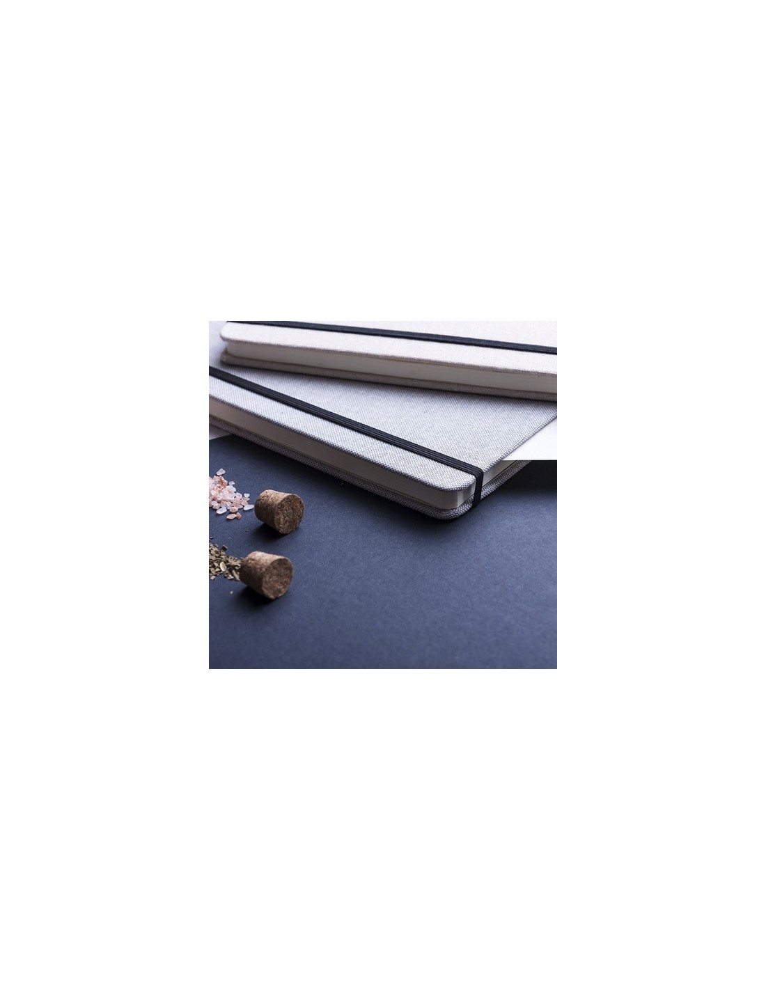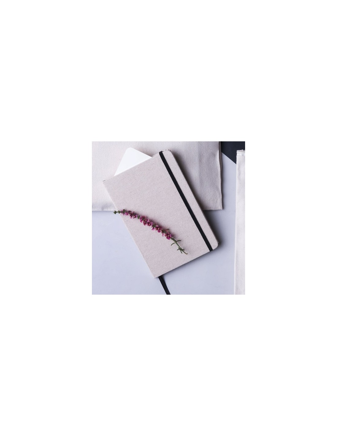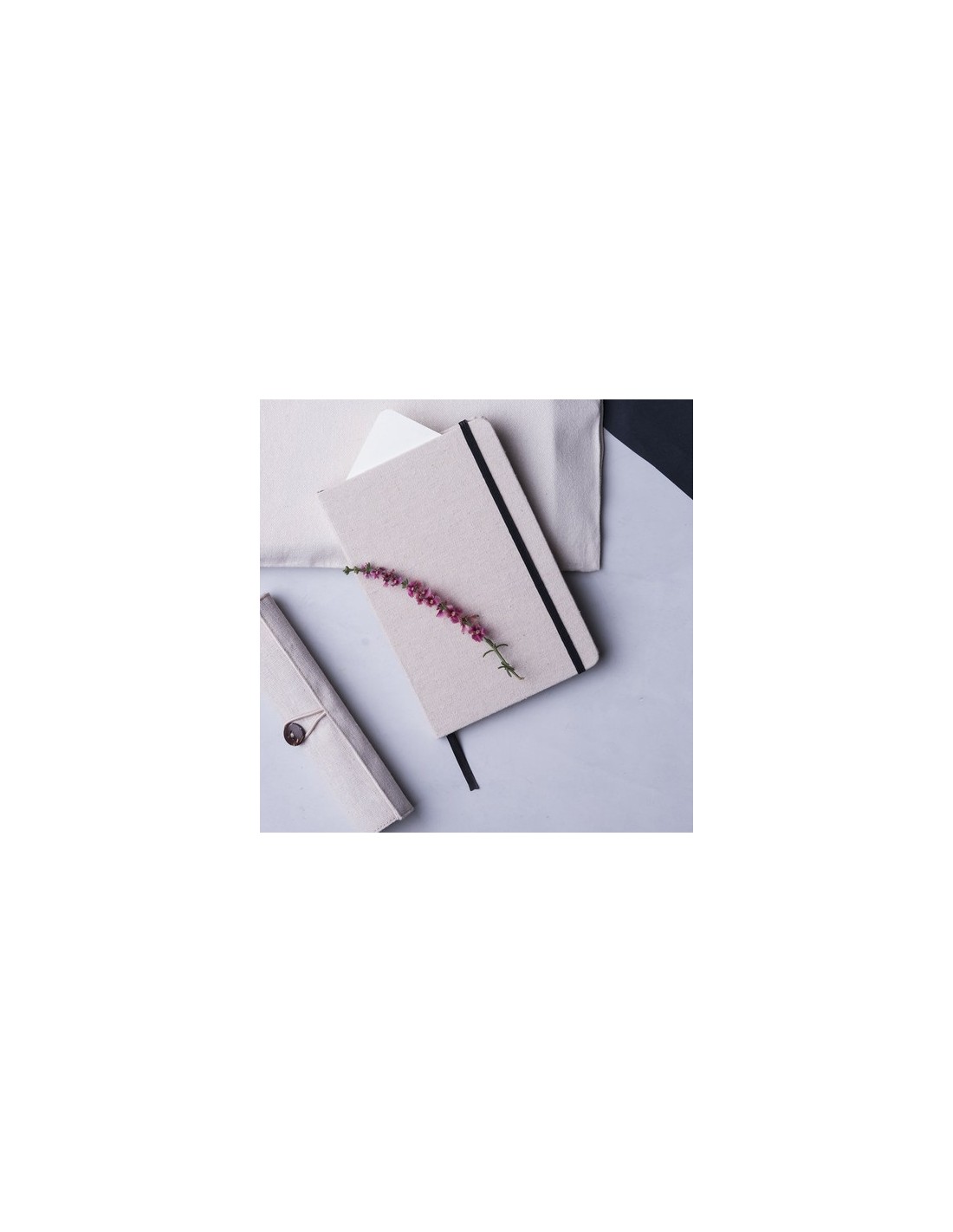 Bloc de notas de materiales naturales. Tapas en suave algodón de color crudo, con elástico de cierre y marcapáginas a juego en vivos colores. Incluye 80 hojas lisas. Portada Rígida. 80 Hojas Composition : Algodón.