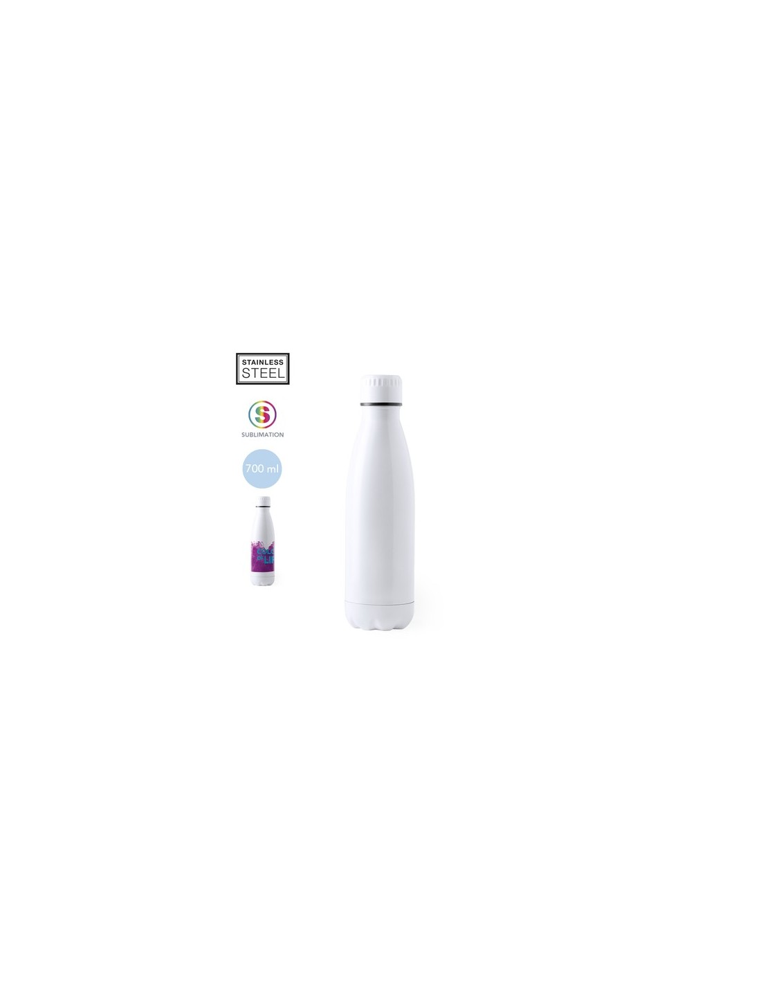 Bidón para sublimación de 700ml de capacidad con cuerpo acabado en acero inox en color blanco brillo. Con tapón de seguridad. Presentado en atractiva caja de diseño. 700 ml Composition : Acero Inox.