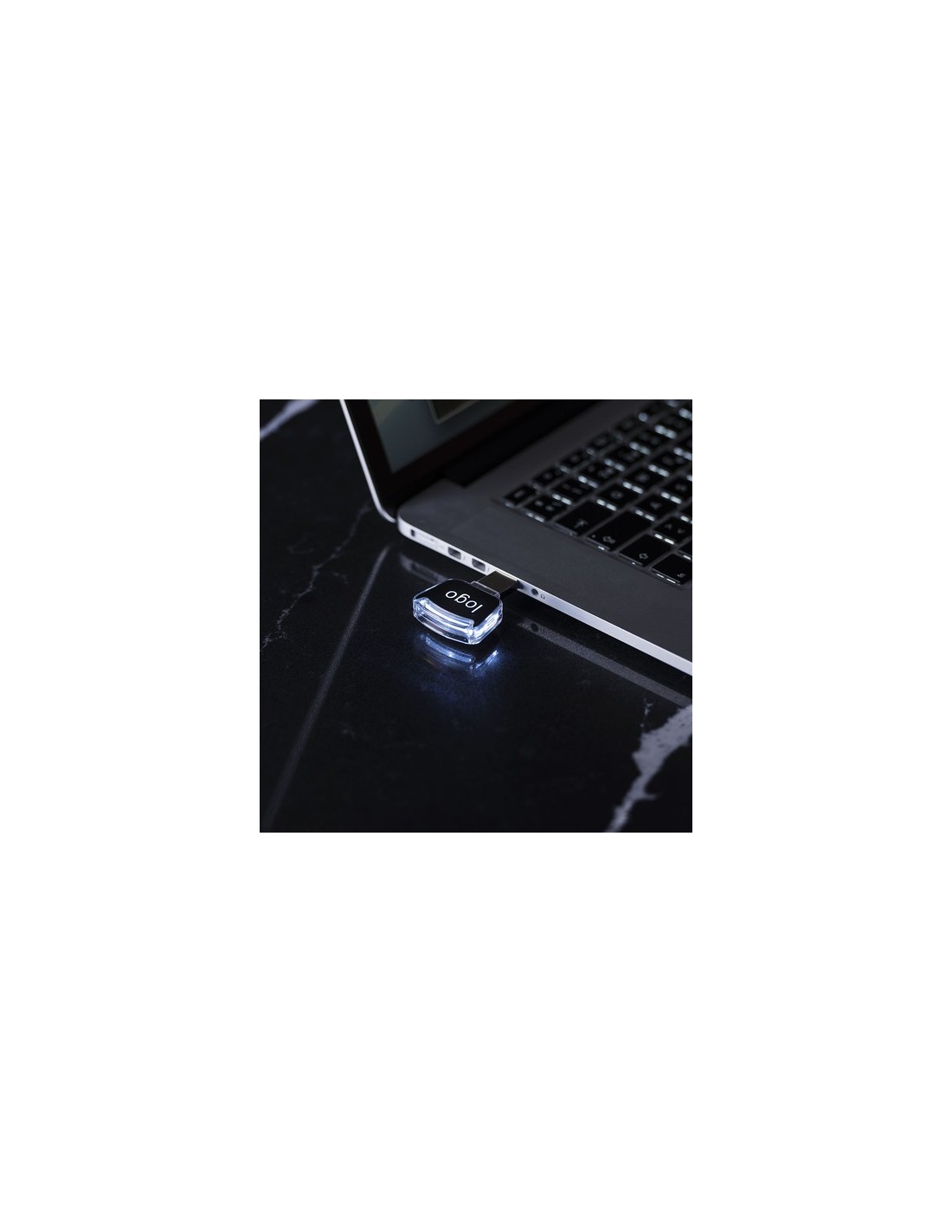 Memoria USB de 16GB de capacidad. De innovador diseño automovilístico, con luz led interior y cuerpo especialmente diseñado para marcaje en láser, iluminando así el logotipo. Presentada en estuche individual. Luces Led