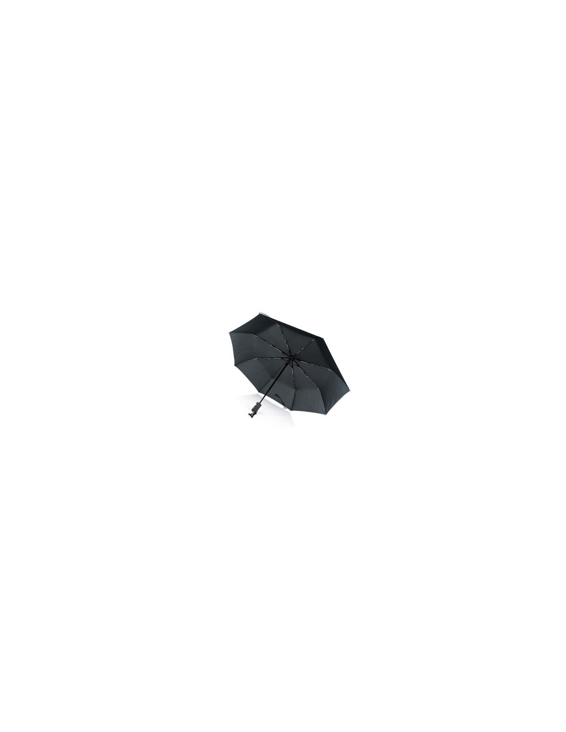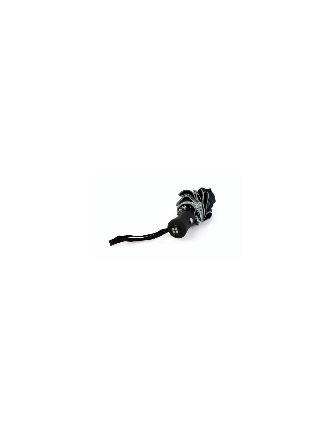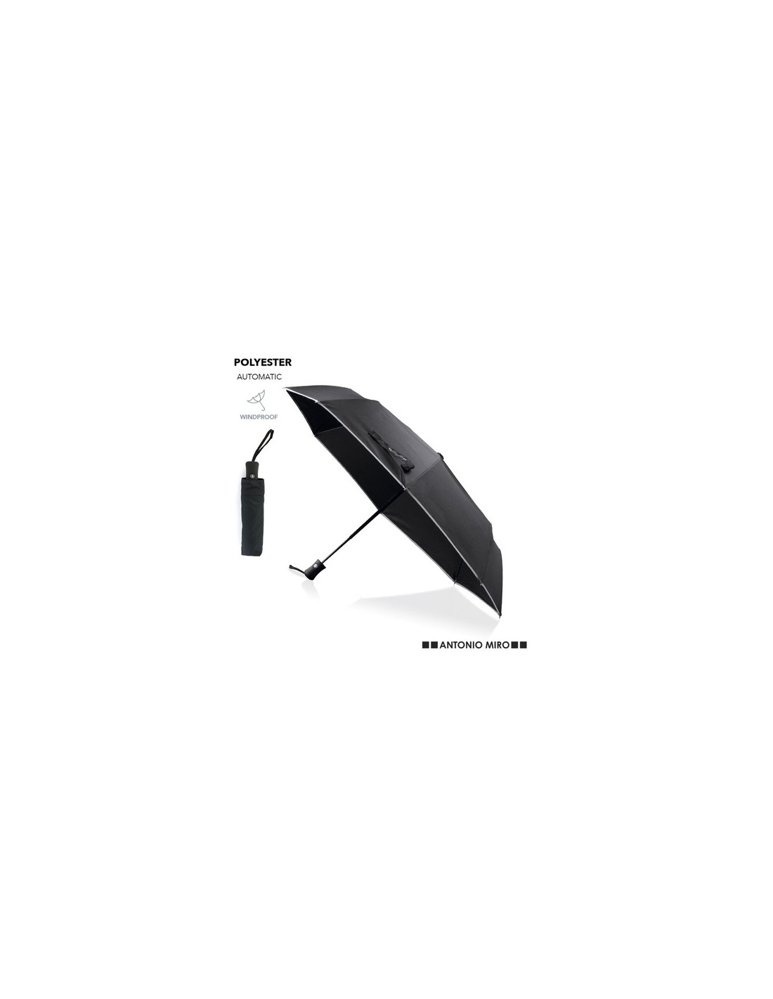 Paraguas plegable de Antonio Miró, de 8 paneles y elegante diseño en color negro con ribetes en color blanco. De 95cm de diámetro, con mecanismo automático de apertura y cierre, sistema antiviento y en resistente material pongee. Con varillas metálicas en color negro, cierre de velcro y mango ergonómico con cinta de transporte. Presentado en funda individual a juego con logotipo de la marca. 21". Apertura y Cierre Automáticos. Sistema Antiviento. Funda Poliéster Composition : Pongee 190T. Varillas Fibra de Vidrio.