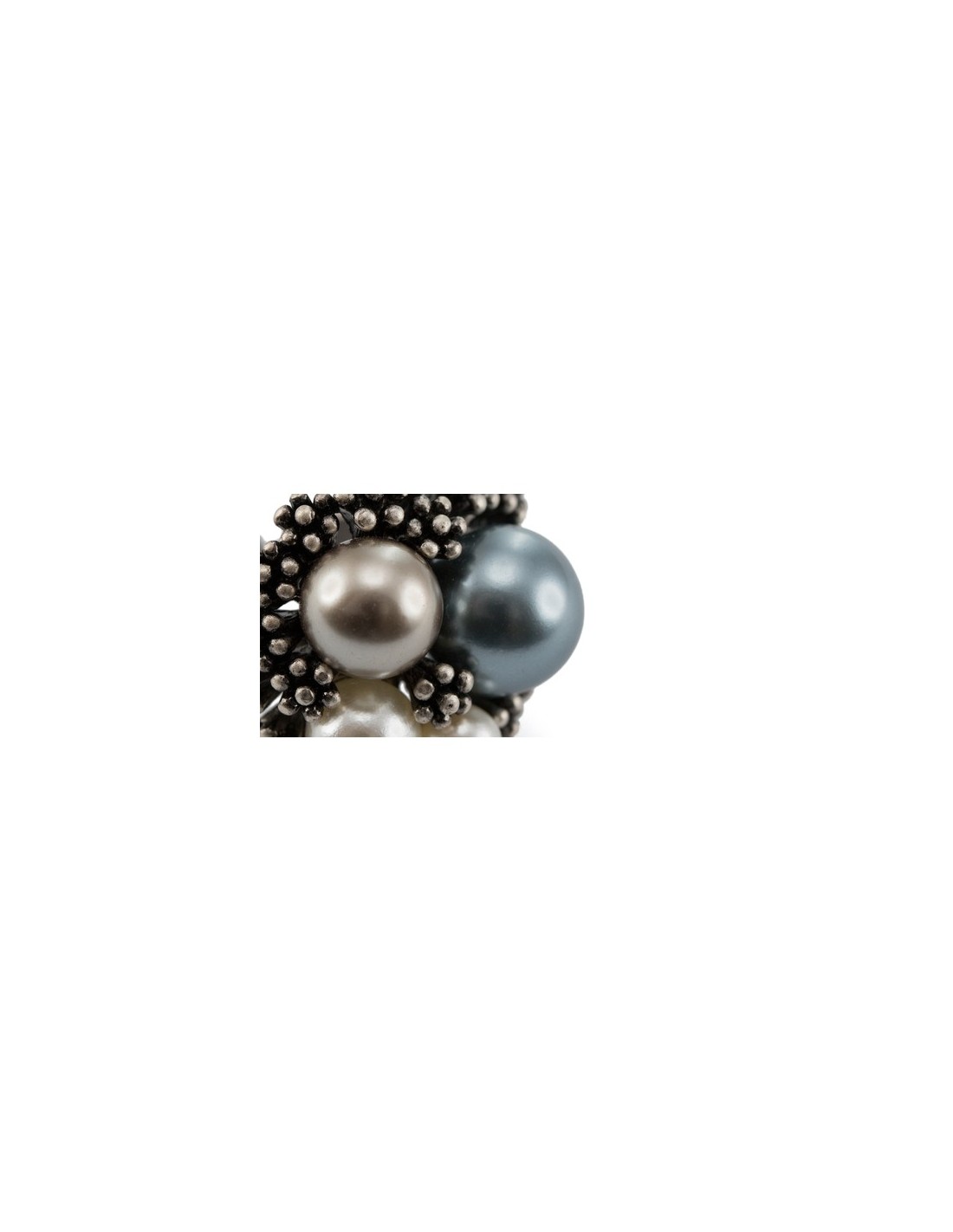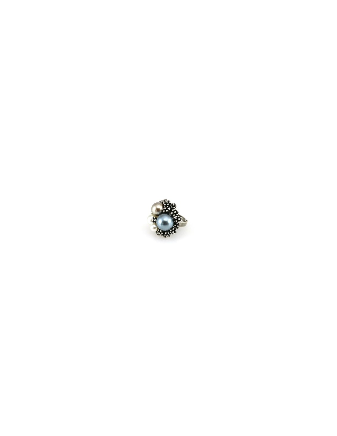 Anillo ajustable de Antonio Miró en metal con incrustación de perlas sintéticas. Presentado en funda con logotipo de la marca. Funda Polipiel