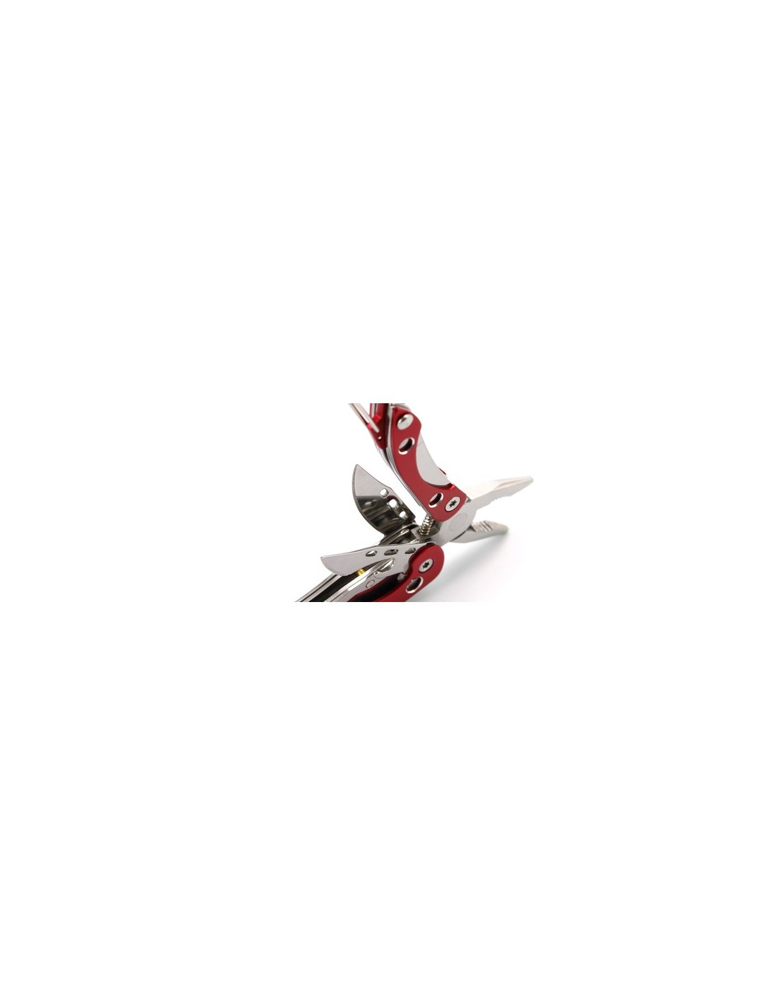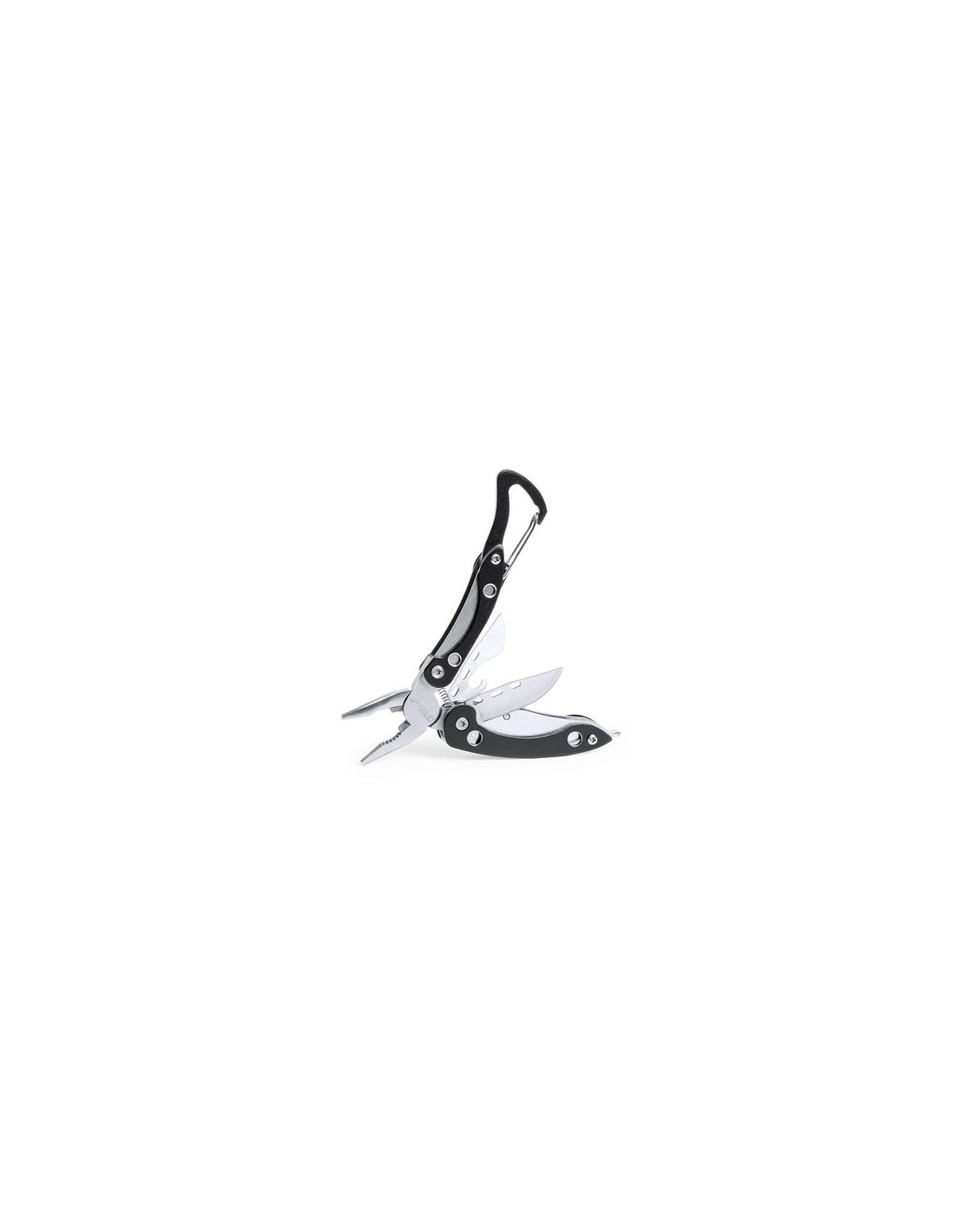 Multiherramienta de orizons con accesorios de acero inox de 6 funciones y mango de aluminio en vivos colores. Con alicates, navaja, abrelatas con destornillador de punta plana con función abrebotellas, destronillador de punta de estrella y mosquetón de acople. Presentada en atractiva caja de diseño con logotipo de la marca. 6 Funciones Composition : Aluminio/ Acero Inox.