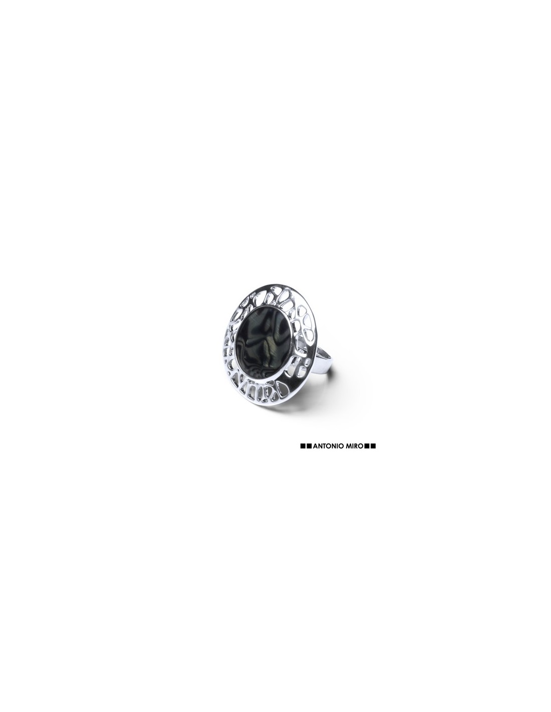 Anillo ajustable de Antonio Miró en metal con incrustación de resina. Presentado en funda de polipiel con logotipo de la marca. Funda Polipiel