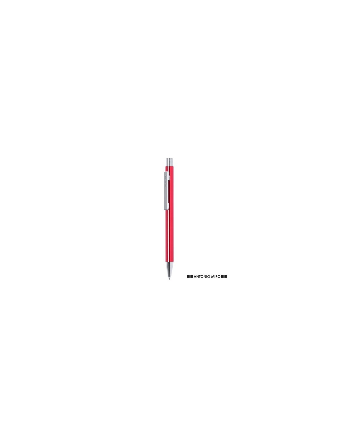 Bolígrafo de Antonio Miró con cuerpo en aluminio de variada gama de vivos colores y en color plateado. De mecanismo pulsador y presentado en bolsita don logotipo de la marca. Tinta azul. Composition : Aluminio.