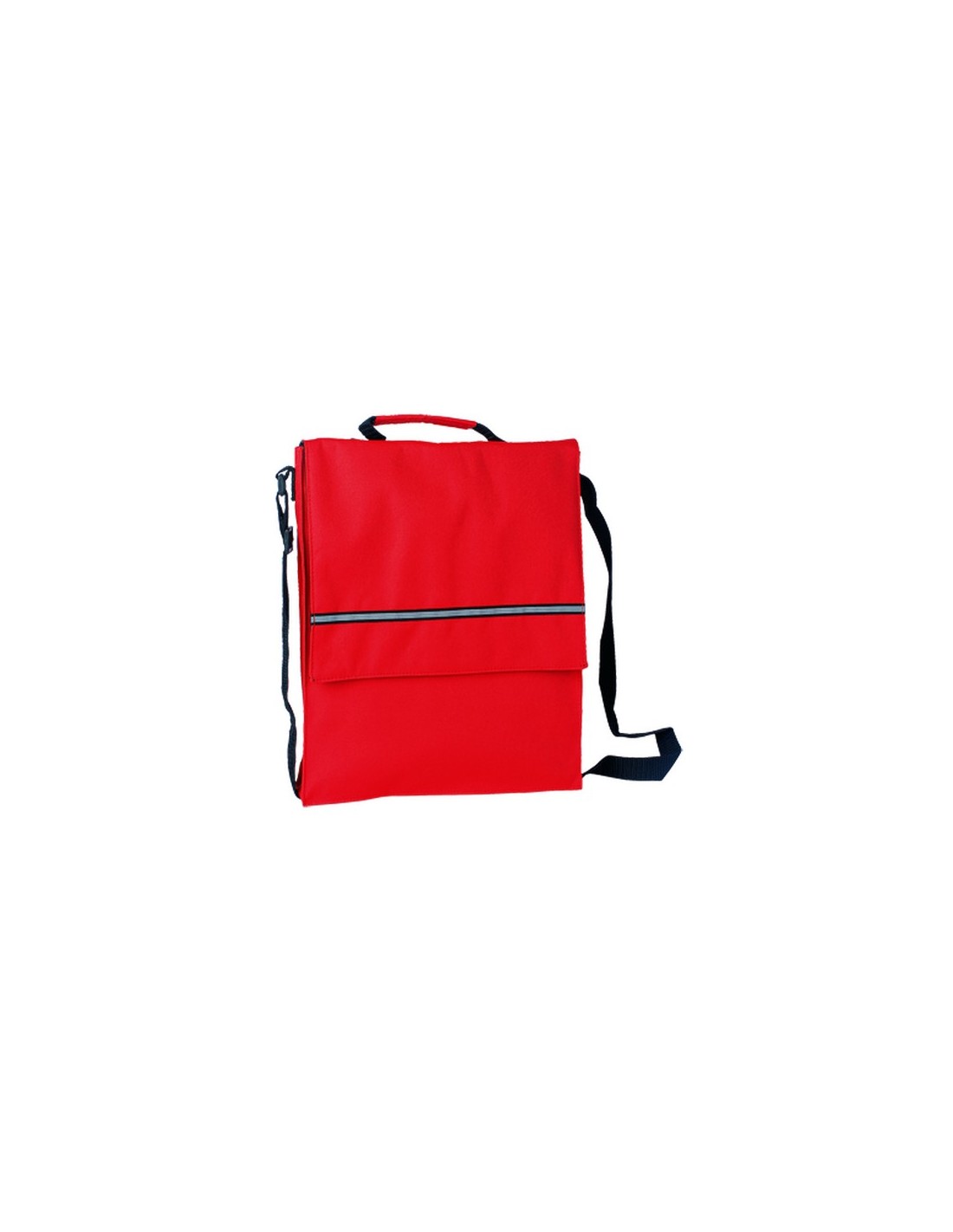 Portadocumentos con solapa de cierre de velcro en poliéster 600D de vivos colores y con franja frontal reflectante. Con asas reforzada a juego, cinta bandolera ajustable y compartimentos interiores con fundas para bolígrafos y smartphone. Composition : Poliéster 600D.