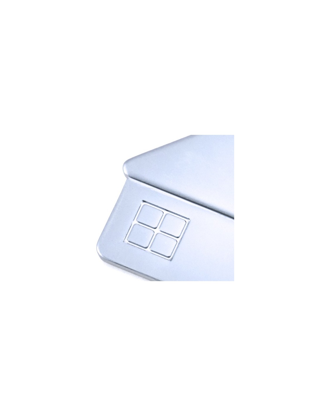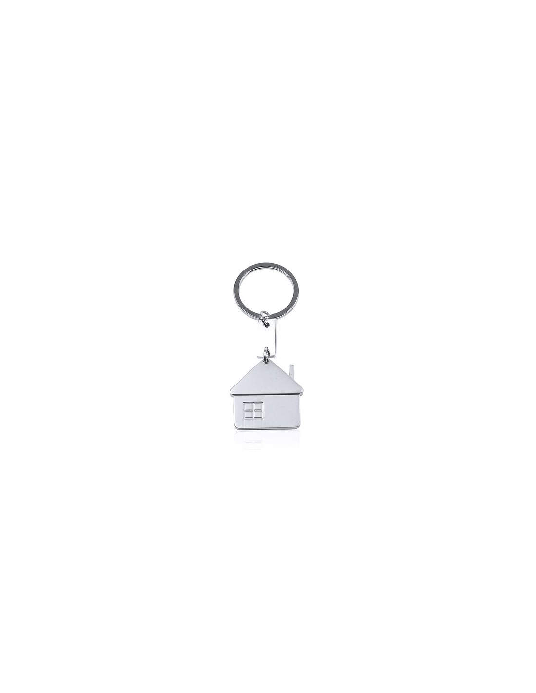 Llavero metálico con divertido diseño de casa en elegante acabado mate. Con cuerpo especialmente diseñado para marcaje en láser. Composition : Metal.