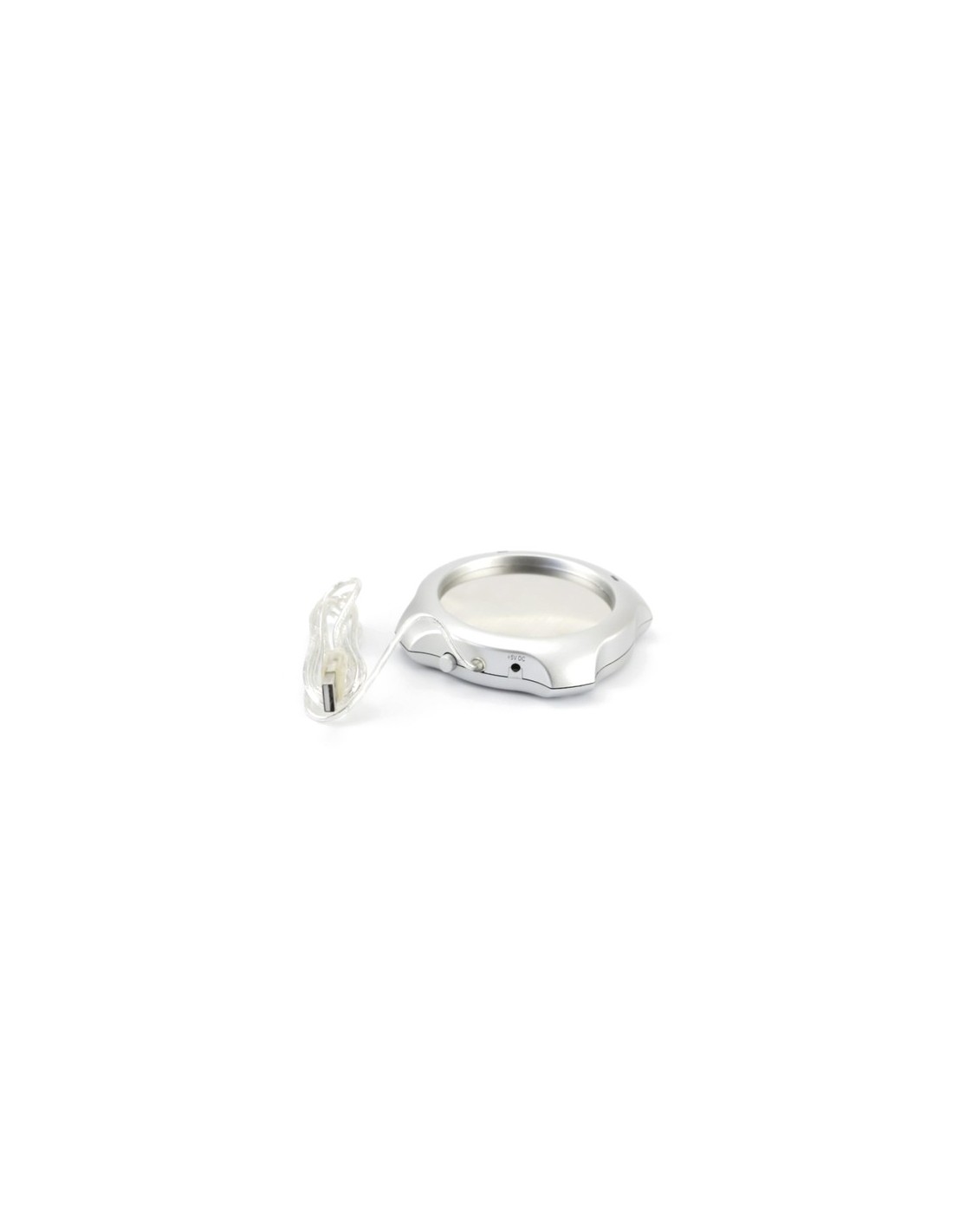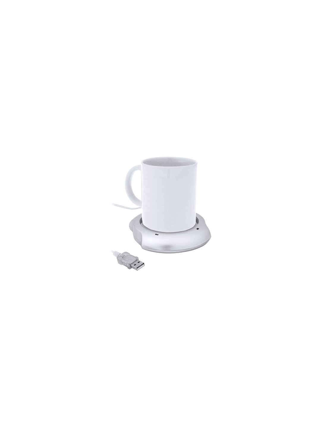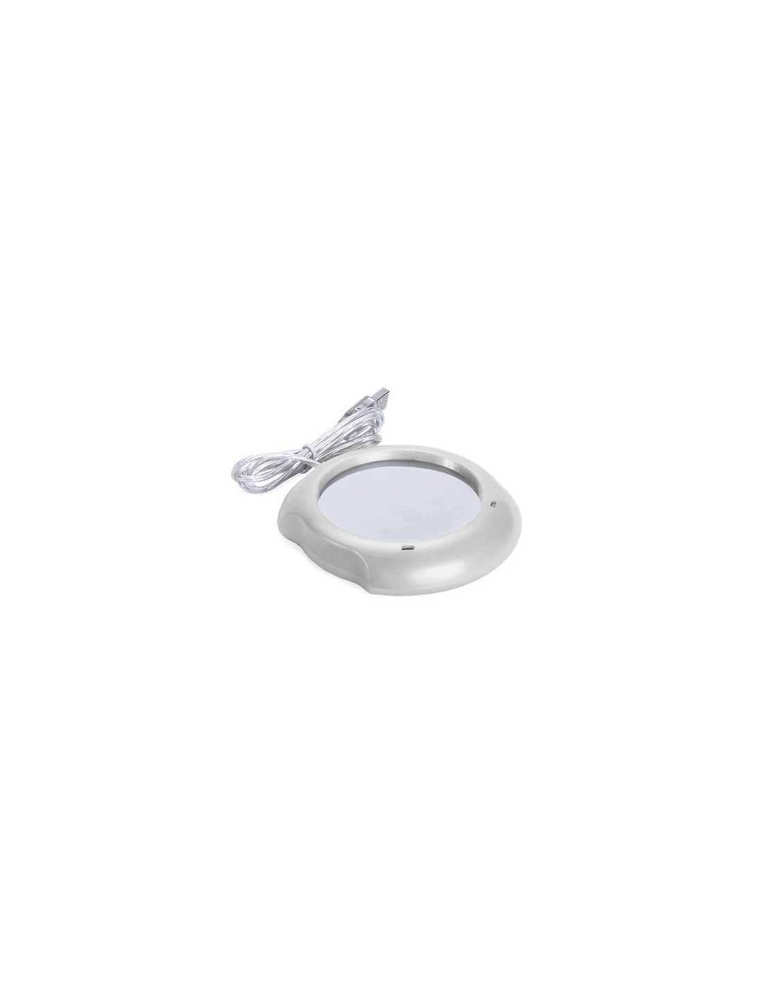 Calentador de tazas con conexión USB y de superficie metálica, especialmente diseñada para mantener el calor. De elegante diseño en color gris y compatible con tazas de hasta 7,4cm de diámetro, incorpora interruptor en la parte trasera y luces de estado. Presentada en caja individual. Conexión USB