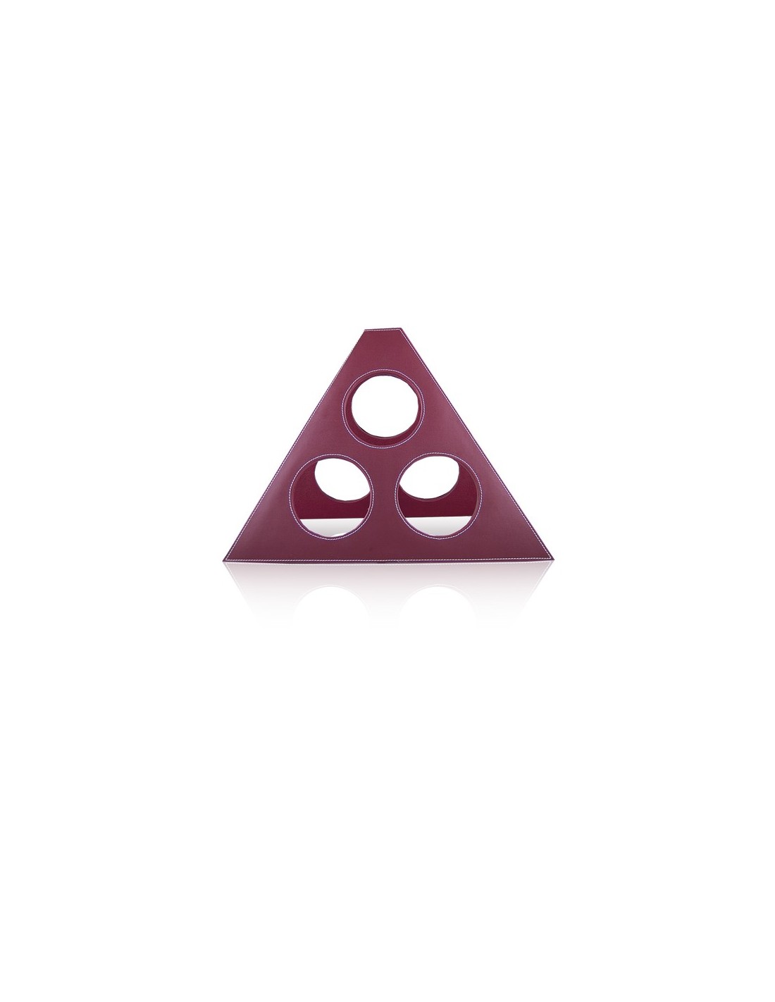Botellero plegable con capacidad para 3 botellas en elegante polipiel de sobrios colores rosado y tinto. Con pespuntes de refuerzo en color blanco. Composition : Polipiel.