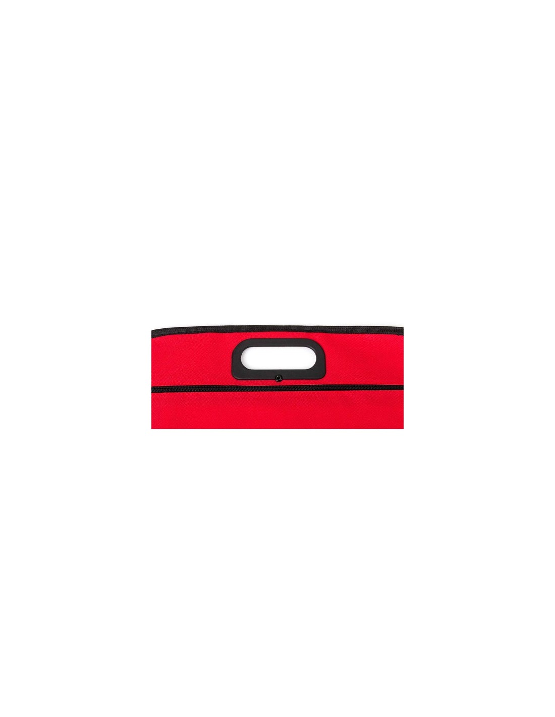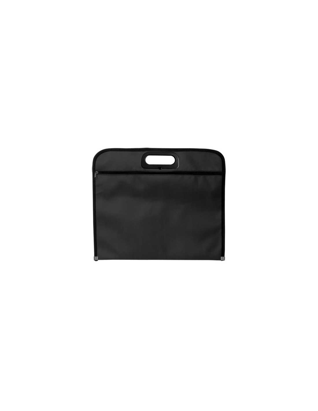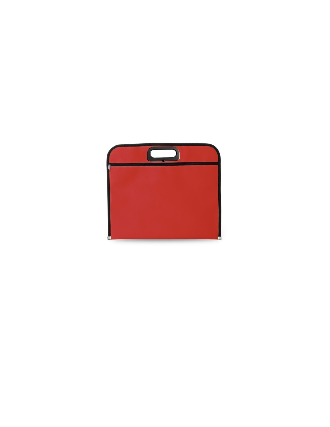 Portadocumentos de cierre de cremallera en suave acabado de poliéster 600D de vivos colores. Con asas de transporte de original diseño troquelado con refuerzo y ribetes en color negro con chapa metálica de refuerzo en la base. Composition : Poliéster 600D.