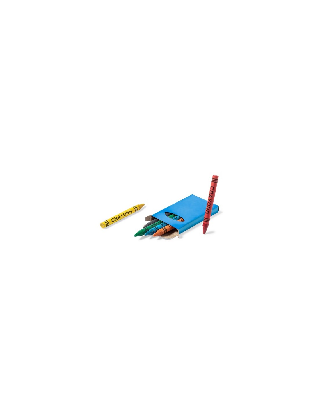 Set de 6 ceras en caja de cartón con acabado brillante en vivos colores y ventana. Con cuerpo cilíndrico en variados colores. En colores rojo, verde, amarillo, azul, negro, y naranja. 6 Ceras Composition : Cartón.