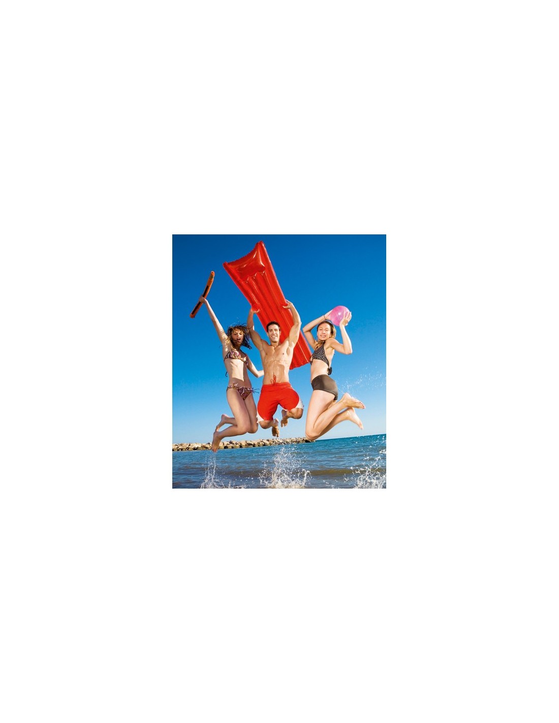 Colchoneta inflable de 180cm en resistente PVC de vivos colores. Presentada con plegado especial para fácil impresión. Plegado Especial para Impresión Composition : PVC.