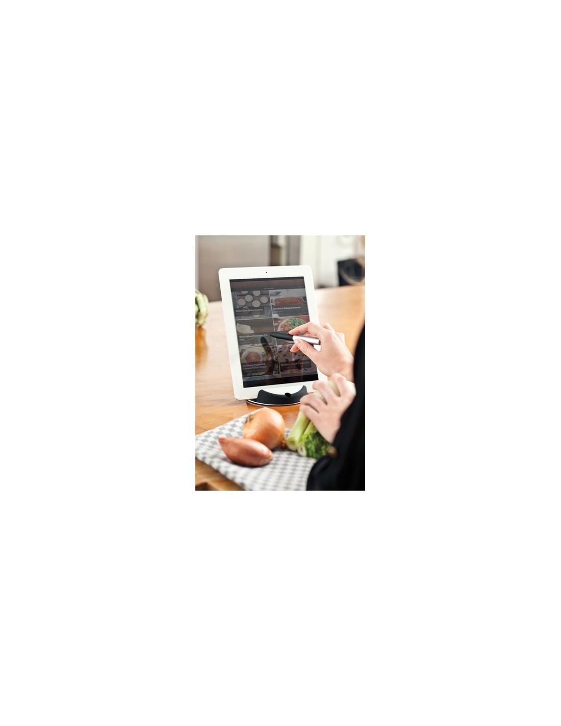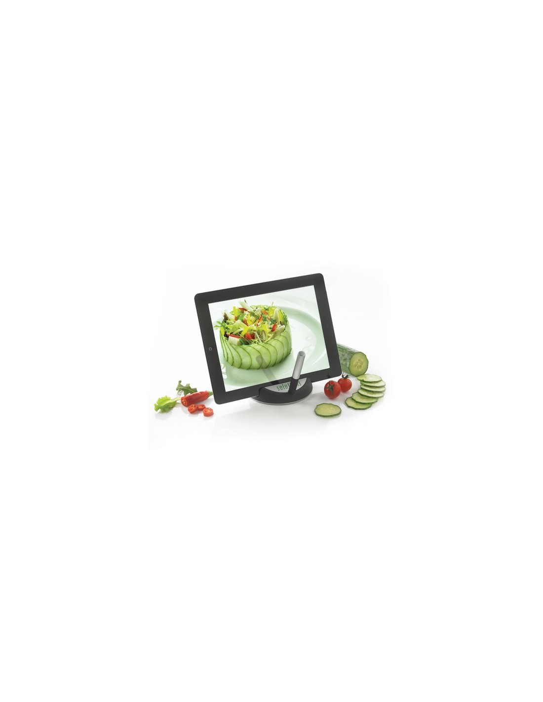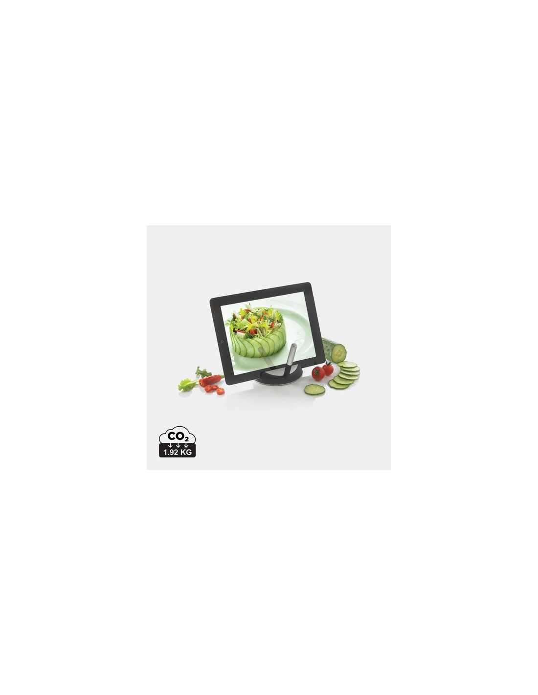 Chef es el stand para todo cocinero creativo. El robusto bolígrafo táctil hace fácil el manejo de la tableta en esas circunstancias de cocina caótica y te ayuda a que nada se caiga encima de tu pantalla. Diseño registrado® Material : Acero inoxidable, PP Recycled Content Percent : 0 Conforme directiva Cadmio 91/338/EC, Conforme contenido de plomo U.S, Conforme PAHS content in Reach & ZEK 01-4-08, Conforme directiva SVHC 1907/2006/EC, Libre de parafinas cloradas de cadena corta y media. Packaging : Funda y caja de regalo All print codes : Laser Engraving 2 - Print code default : Grabado a láser - soporte - 40 x 10 mm - max color : 1 Social Audits : BSCI Total CO2 emissions : 1,92.