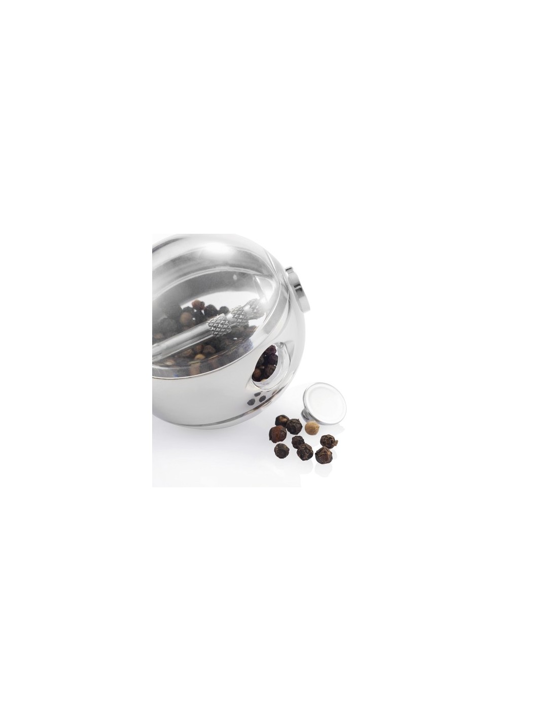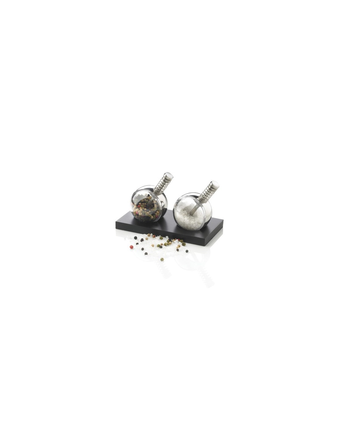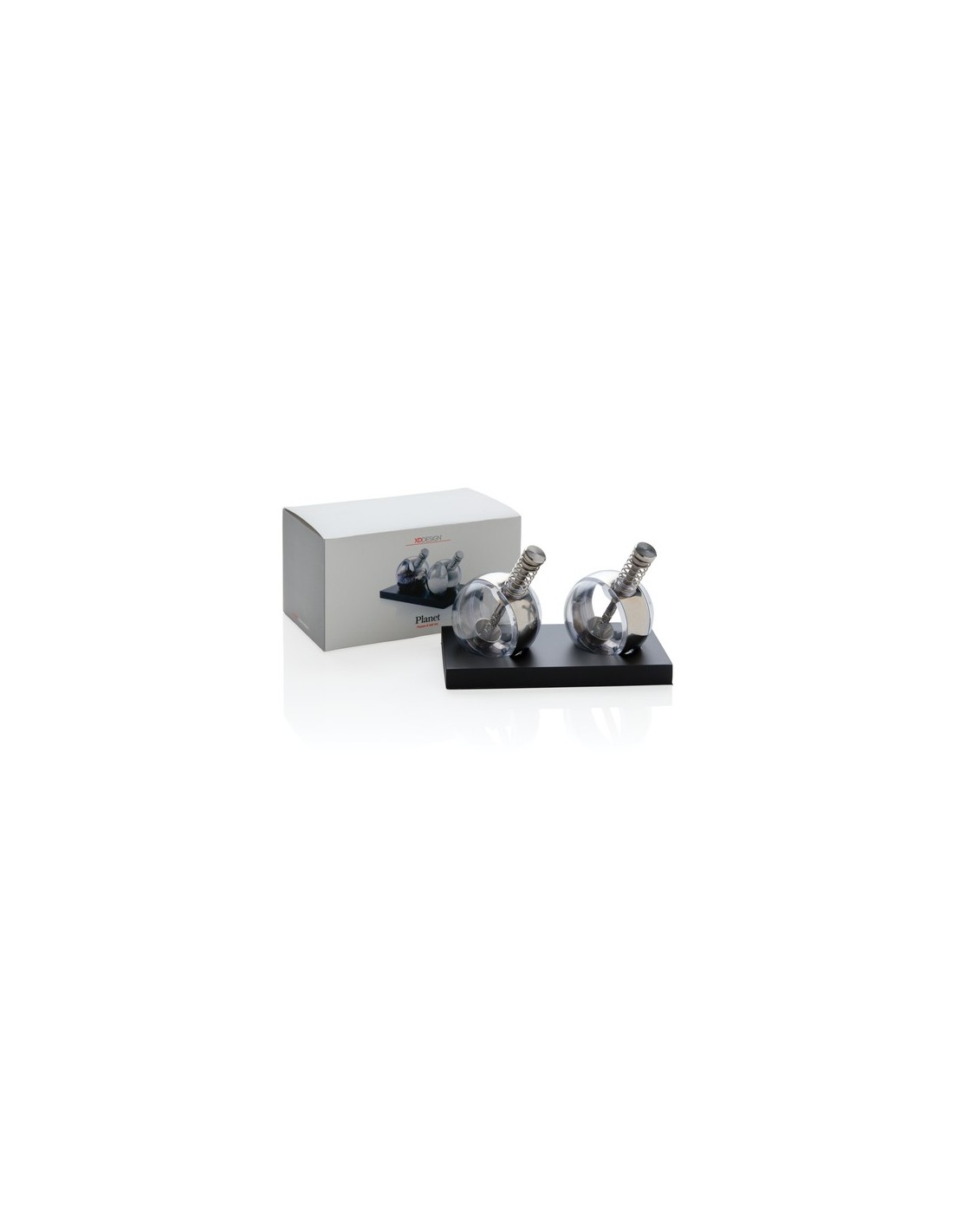 Planet es un moderno set sal y pimienta de diseño único con el que gracias a su molinillo podrás dispensar con una sola mano. Las esferas transparentes te ayudarán a ver el nivel de sal y pimienta. Diseño registrado® Material : Acero inoxidable, Madera Recycled Content Percent : 0 Sin materiales Bisphenol A, Conforme legislación alimentos Alemania, Conforme directiva SVHC 1907/2006/EC, Libre de parafinas cloradas de cadena corta y media. Packaging : Bolsa de plástico y caja individual All print codes : Pad Print,Laser Engraving 2,Doming - Print code default : Tampografía - bandeja - 30 x 15 mm - max color : 5 Social Audits : BSCI Total CO2 emissions : 2,05.