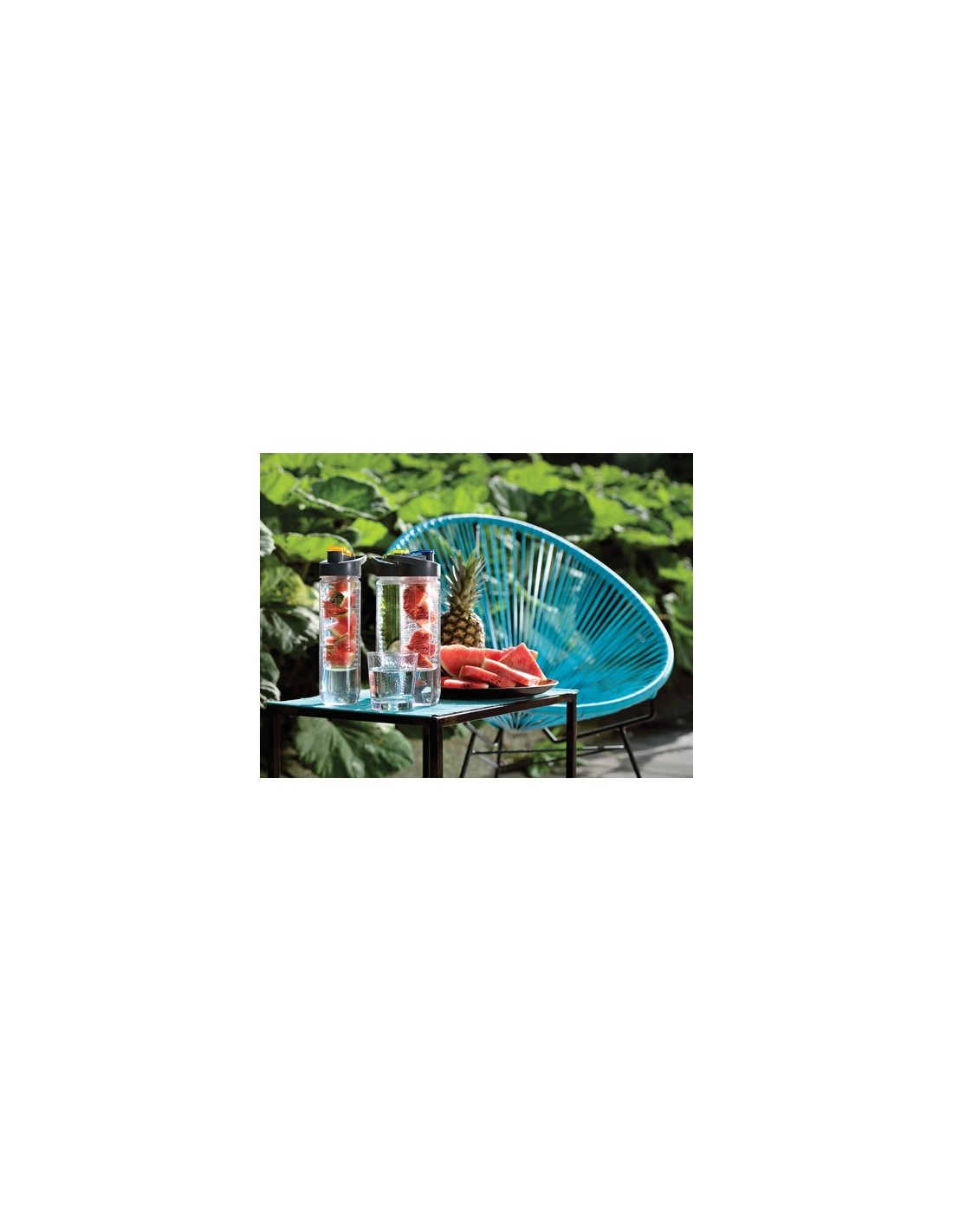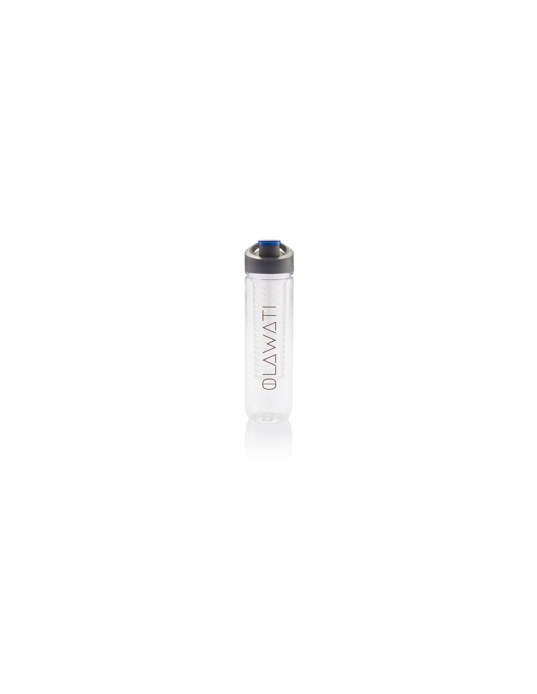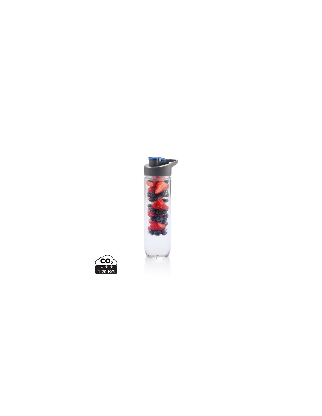 Botella Tritan de 800 ml con compartimento para frutas. Mezcla tu agua con vitaminas y sabor añadiendo fruta fresca. También le puedes añadir cubitos de hielo. Material : Tritan, PP Recycled Content Percent : 0 Conforme directiva SVHC 1907/2006/EC, Libre de parafinas cloradas de cadena corta y media., Conforme legislación alimentos Alemania, Sin materiales Bisphenol A Packaging : Caja individual All print codes : Pad Print Drinkware,Digital round 360-2,SilkScreen Round - Print code default : Tampografía - parte frontal en medio - 25 x 80 mm - max color : 5 Social Audits : BSCI Total CO2 emissions : 1,2.