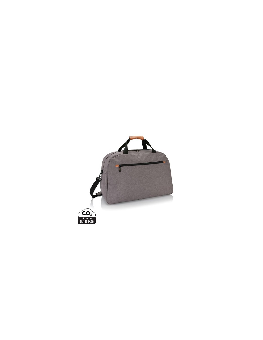 Bolsa de viaje. Poliéster 600D en 2 colores con modernos detalles en marrón en las asas y cremalleras. Sin PVC. Material : Poliéster, PU Recycled Content Percent : 0 Conforme directiva AZO dye 2002/61/EC, Conforme directiva Cadmio 91/338/EC, Conforme contenido de plomo U.S, Conforme PAHS content in Reach & ZEK 01-4-08, Libre de parafinas cloradas de cadena corta y media., Conforme directiva test libre níkel BS EN 1811:2012 y A:2015, Conforme directiva SVHC 1907/2006/EC, No usados materiales PVC Packaging : Polybag y a granel All print codes : Embroidery,SilkScreen,Digital Transfer OS,Screen Transfer OS - Print code default : Bordado - parte frontal del artículo - 150 x 150 mm - max color : 10 Social Audits : BSCI Total CO2 emissions : 6,18.
