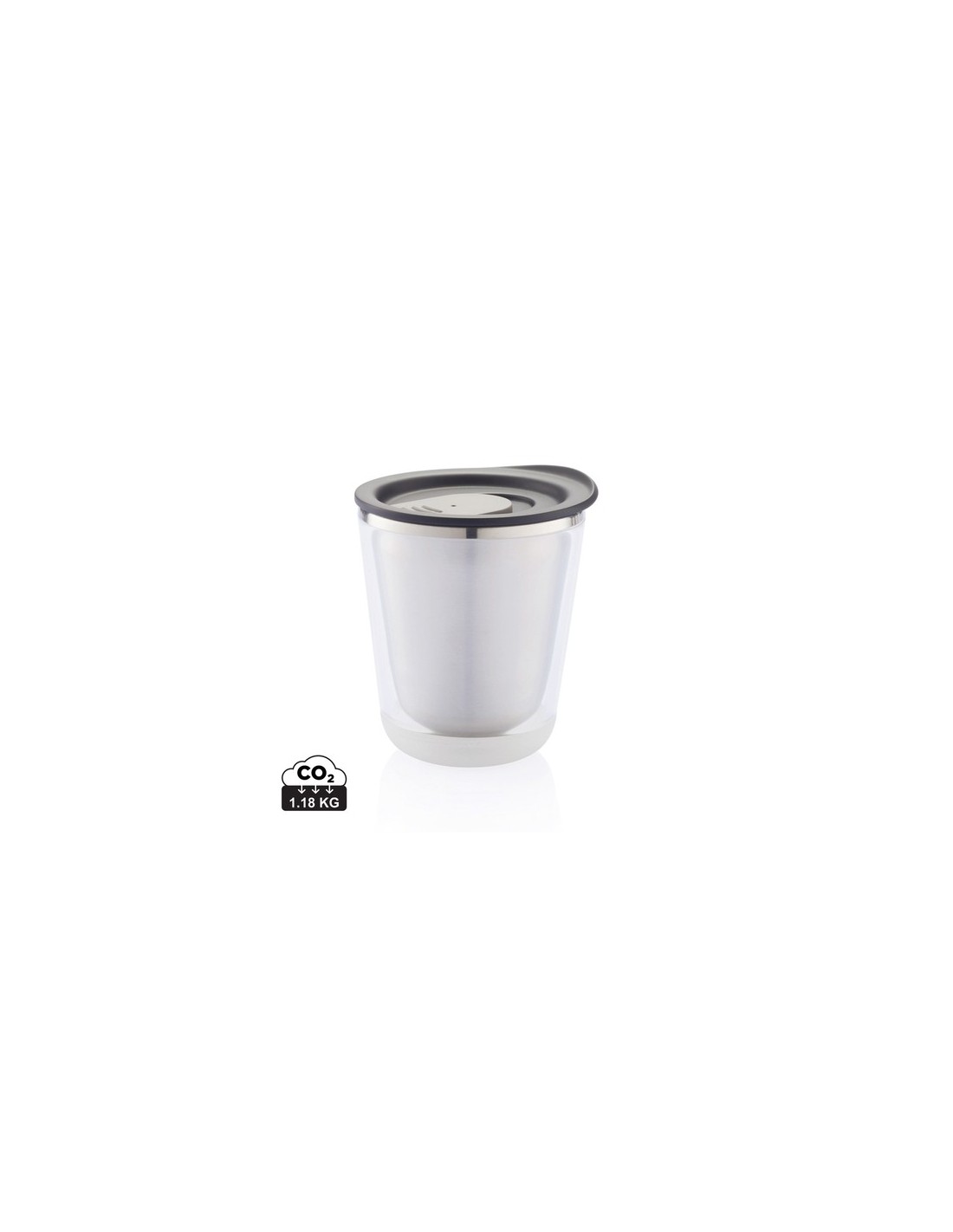 Se cierra fácilmente, aislada y lo suficientemente compacta para ponerla directamente en la máquina de café (227ml). Higiénica totalmente ya que es de acero inoxidable y no de plástico. Diseñada para reciclarla fácilmente. Diseño registrado® Material : Acero inoxidable, AS Recycled Content Percent : 0 Libre de parafinas cloradas de cadena corta y media., Conforme directiva SVHC 1907/2006/EC, Conforme legislación alimentos Alemania, Sin materiales Bisphenol A Packaging : Caja de regalo All print codes : Pad Print Drinkware,Digital Print 2,SilkScreen Round,Laser Engraving 3 - Print code default : Tampografía - parte frontal del artículo - 25 x 60 mm - max color : 5 Social Audits : SMETA Total CO2 emissions : 1,18.
