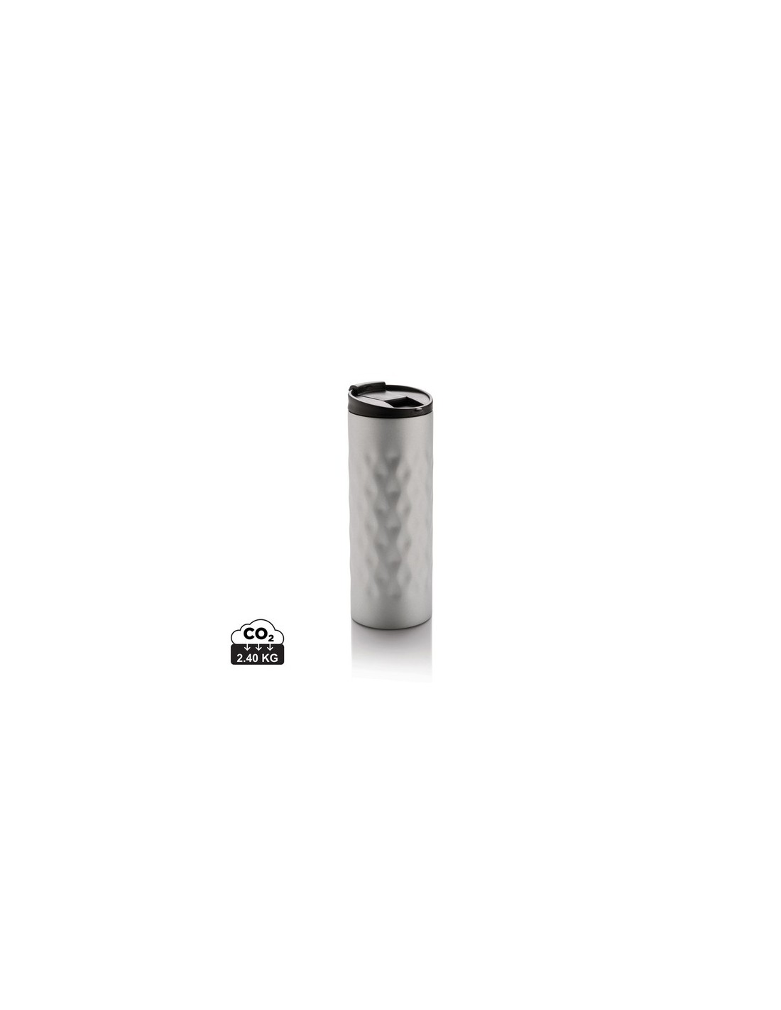 Taza de acero inoxidable. Diseño moderno y geométrico con capacidad 350ml. Material : Acero inoxidable, PP Recycled Content Percent : 0 Libre de parafinas cloradas de cadena corta y media., Conforme directiva SVHC 1907/2006/EC, Conforme legislación alimentos Alemania, Sin materiales Bisphenol A Packaging : Bolsa de plástico y caja individual All print codes : Pad Print Drinkware,SilkScreen Round,Laser Engraving 3 - Print code default : Tampografía - parte frontal/alta del artículo - 30 x 18 mm - max color : 5 Social Audits : BSCI Total CO2 emissions : 2,4.