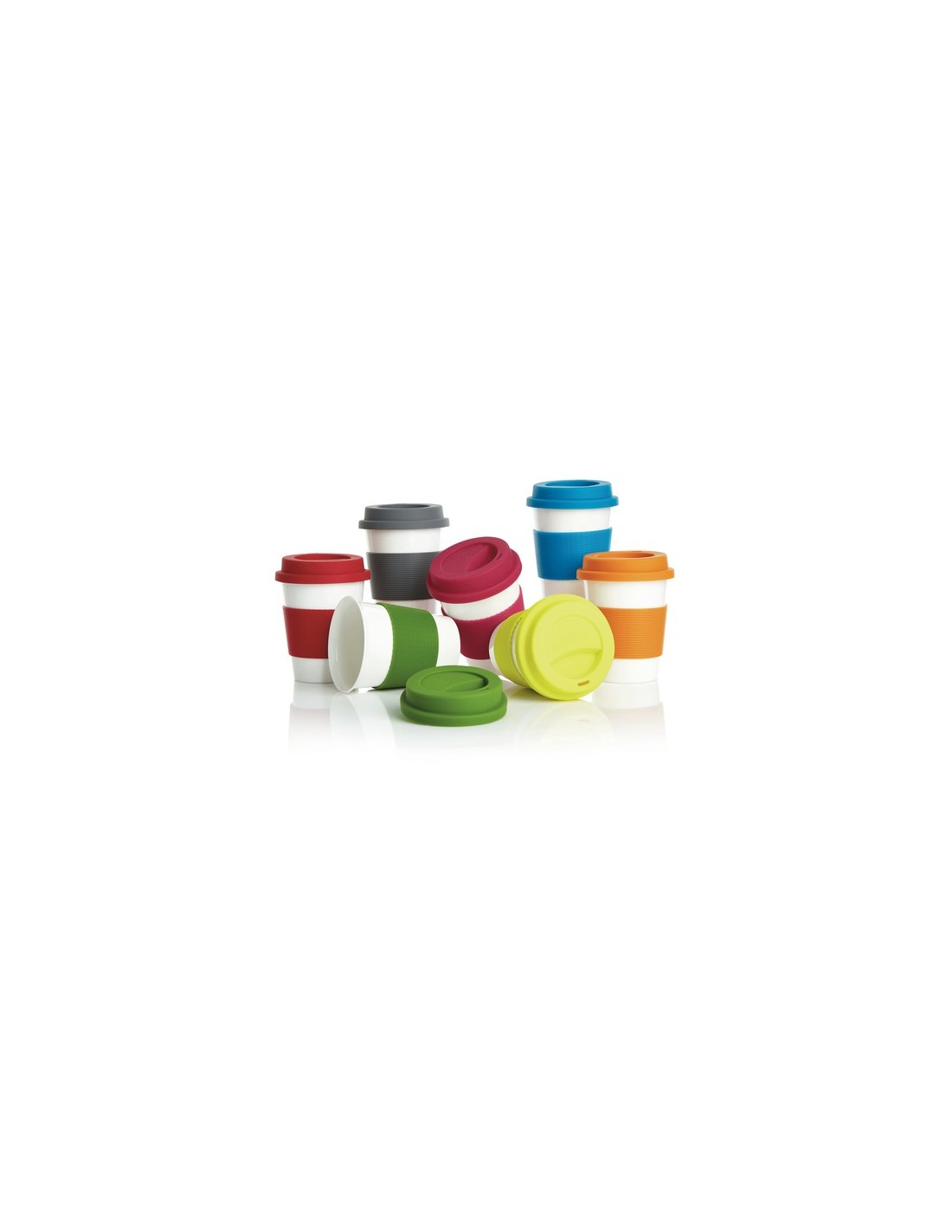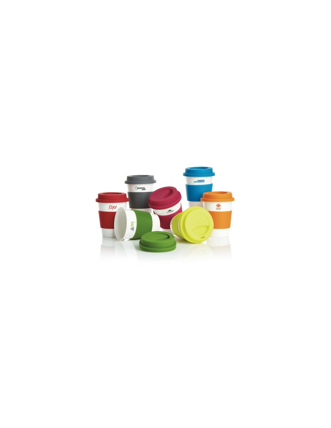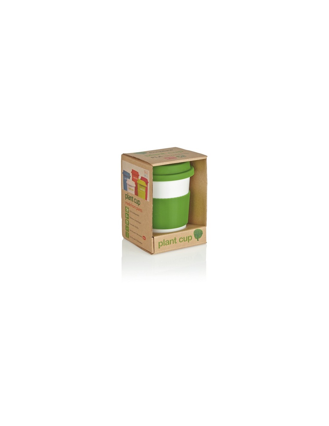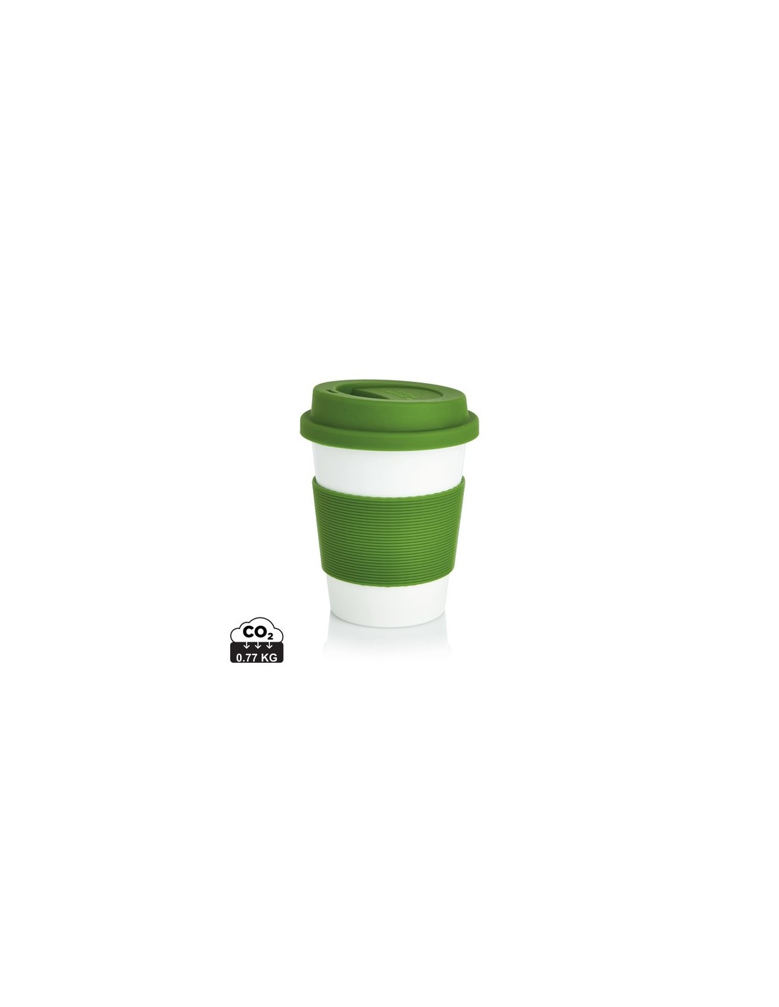 Taza de 350ml con agarre y tapa de silicona. Fabricada a partir de material sostenible (PLA). No contiene BPA y es apta para el lavavajillas. Material : PLA, Silicona Recycled Content Percent : 0 Sin materiales Bisphenol A, Conforme legislación alimentos Alemania, Conforme directiva SVHC 1907/2006/EC, Libre de parafinas cloradas de cadena corta y media. Packaging : Caja de regalo All print codes : Pad Print Drinkware - Print code default : Tampografía - parte trasera y alta del artículo - 30 x 15 mm - max color : 5 Social Audits : BSCI,SA8000 Total CO2 emissions : 0,77.