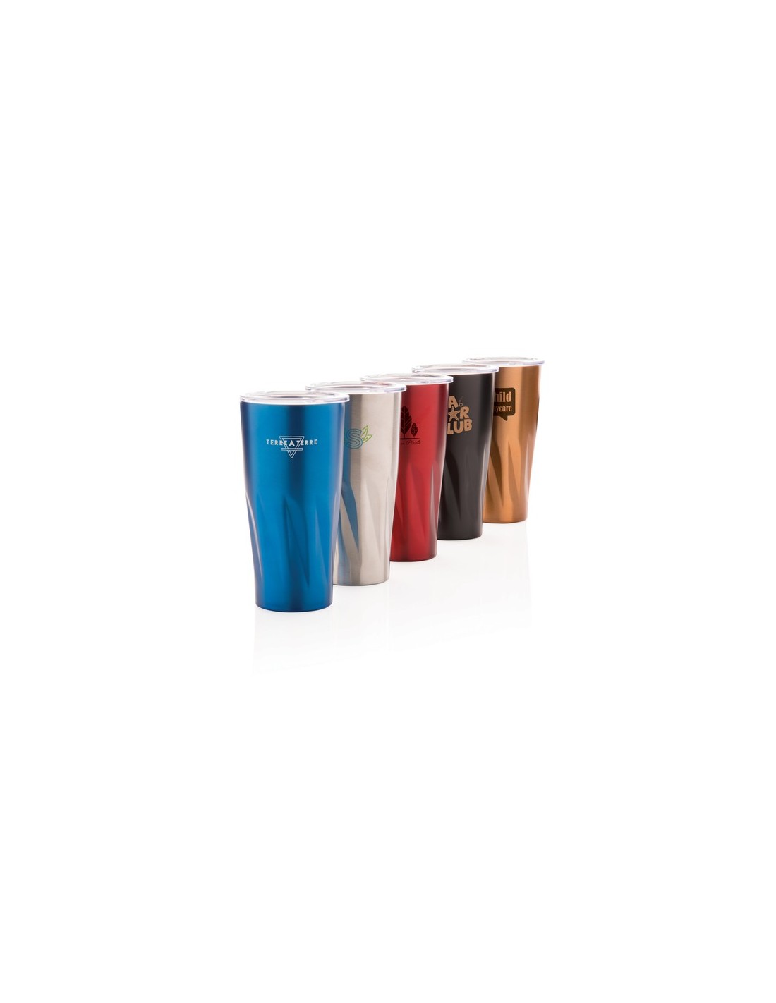 Esta taza de acero inoxidable 304 tiene una construcción al vacío de doble pared con aislamiento de cobre, significando que mantiene las bebidas calientes durante 8 horas y frías durante 24 horas. Esto evita la condensación en el exterior del vaso. Fácil de beber y tapa a presión con cierre deslizante. Contenido 500 ml. A prueba de derrames y solo para lavar a mano. Presentado en caja de regalo XD. Material : Acero inoxidable, AS Recycled Content Percent : 0 Libre de parafinas cloradas de cadena corta y media., Conforme directiva SVHC 1907/2006/EC, Conforme legislación alimentos Alemania, Sin materiales Bisphenol A Packaging : Bolsa de plástico y caja individual All print codes : Laser Engraving 3,SilkScreen Round,Pad Print Drinkware - Print code default : Grabado a láser - parte frontal/alta del artículo - 35 x 50 mm - max color : 1 Total CO2 emissions : 2,7.