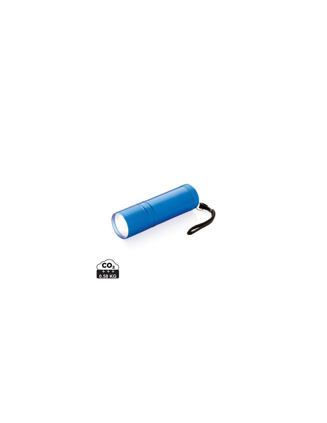 Linterna de bolsillo COB super brillante. Esta linterna COB es mucho más brillante que las linternas LED regulares y consume menos energía por lo que se puede utilizar hasta un 30% más con la misma batería. Cuerpo de aluminio resistente y asa para colgar. Incluye 3 pilas AAA para uso directo. Material : Aluminio, ABS Recycled Content Percent : 0 Conforme directiva SVHC 1907/2006/EC, Conforme PAHS content in Reach & ZEK 01-4-08, Hoja de datos de seguridad del material disponible, Conforme directiva de sustancias peligrosas 2011/65/EC & 2015/863, Conforme directiva Electromagnética 2014/30/EU, Conforme directiva bateria 2006/66EC, Conforme directiva sistemas de alumbrado de lámparas y seguridad sistemas fotobiológicos EN 62471, Libre de parafinas cloradas de cadena corta y media. WEEE Battery : 3 AA - R03 - 21,8 g. Packaging : Bolsa de plástico y caja individual All print codes : Pad Print,Laser Engraving 2 - Print code default : Tampografía - parte frontal del artículo - 35 x 10 mm - max color : 5 Social Audits : BSCI Total CO2 emissions : 0,58.