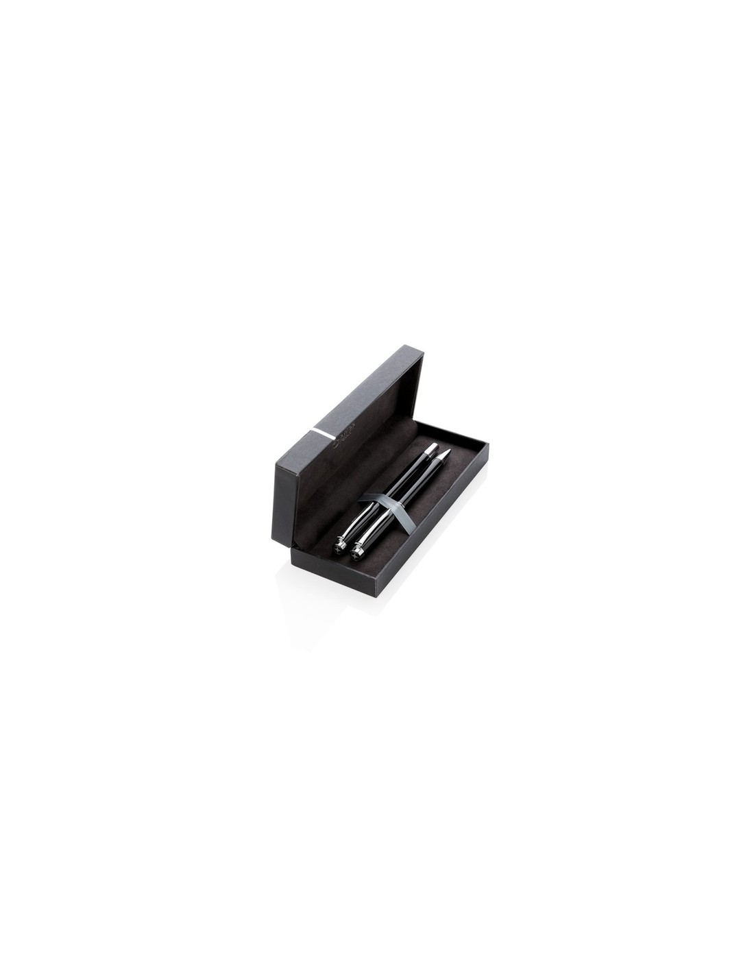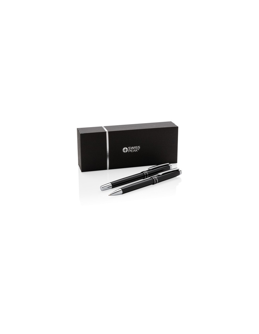 La colección Swiss Peak Heritage habla el lenguaje de la elegancia moderna. Bolígrafo de metal de lujo y roller a juego presentado en caja de regalo Swiss Peak. Ambos rellenos con un mínimo de 1200 metros de escritura y tinta alemana. Material : Latón, Acero Recycled Content Percent : 0 Conforme directiva Cadmio 91/338/EC, Conforme contenido de plomo U.S, Libre de parafinas cloradas de cadena corta y media., Conforme directiva SVHC 1907/2006/EC, Conforme PAHS content in Reach & ZEK 01-4-08 Packaging : Funda y caja de regalo All print codes : Laser Engraving 1,Pad Print Low - Print code default : Grabado a láser - al lado del clip - 40 x 5 mm - max color : 1 Social Audits : BSCI Total CO2 emissions : 1,15.