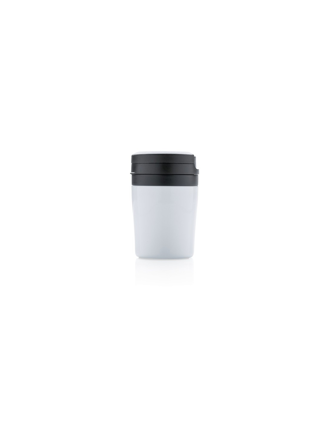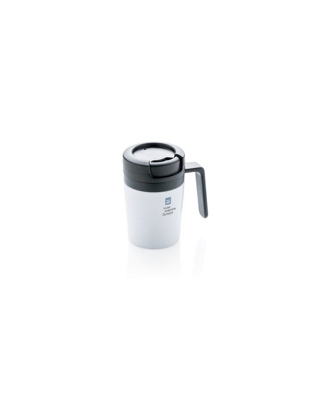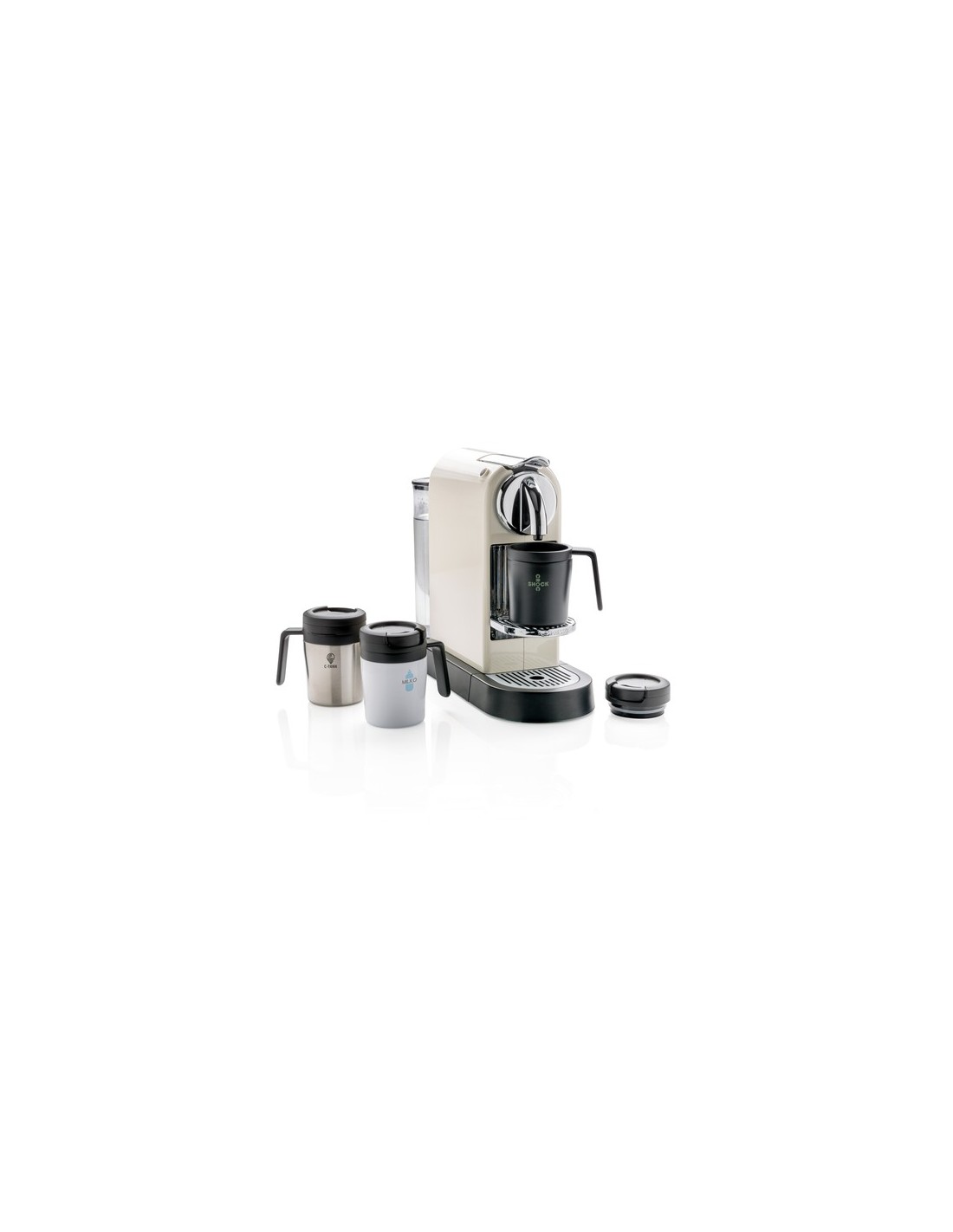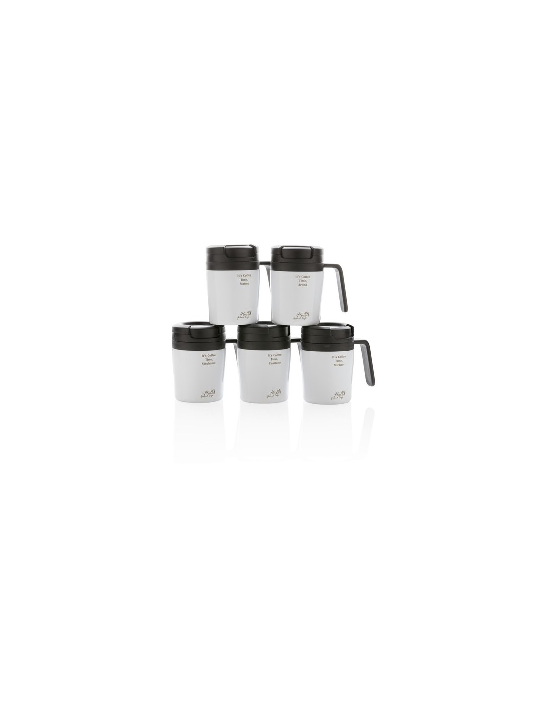 Menos es más. Con su longitud de 8 cm esta es la taza de doble pared perfecta para tu máquina de café. PP interior. Genial para el café Ristretto, Espresso y Largo. Asa agradable para beber con una sola mano. Apertura de giro fácil para evitar goteo. Lavable a mano solamente. Contenido 160ml. Diseño registrado® Material : PP, Acero inoxidable Recycled Content Percent : 0 Libre de parafinas cloradas de cadena corta y media., Conforme directiva SVHC 1907/2006/EC, Conforme legislación alimentos Alemania, Sin materiales Bisphenol A Packaging : Bolsa de plástico y caja individual All print codes : Pad Print Drinkware,Laser Engraving 3 - Print code default : Tampografía - parte frontal/alta del artículo - 25 x 20 mm - max color : 5 Total CO2 emissions : 0,82.
