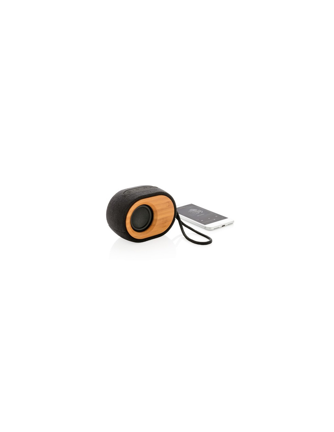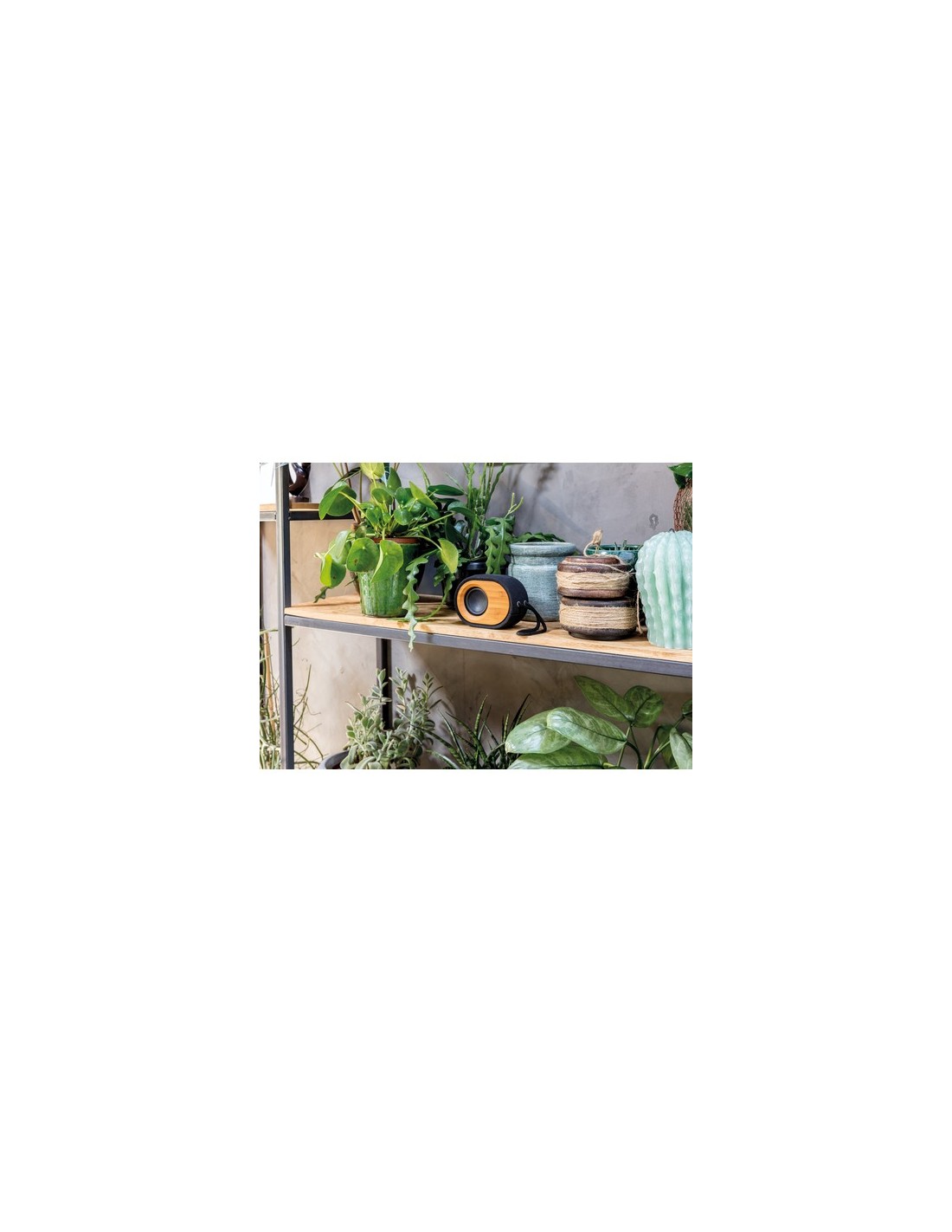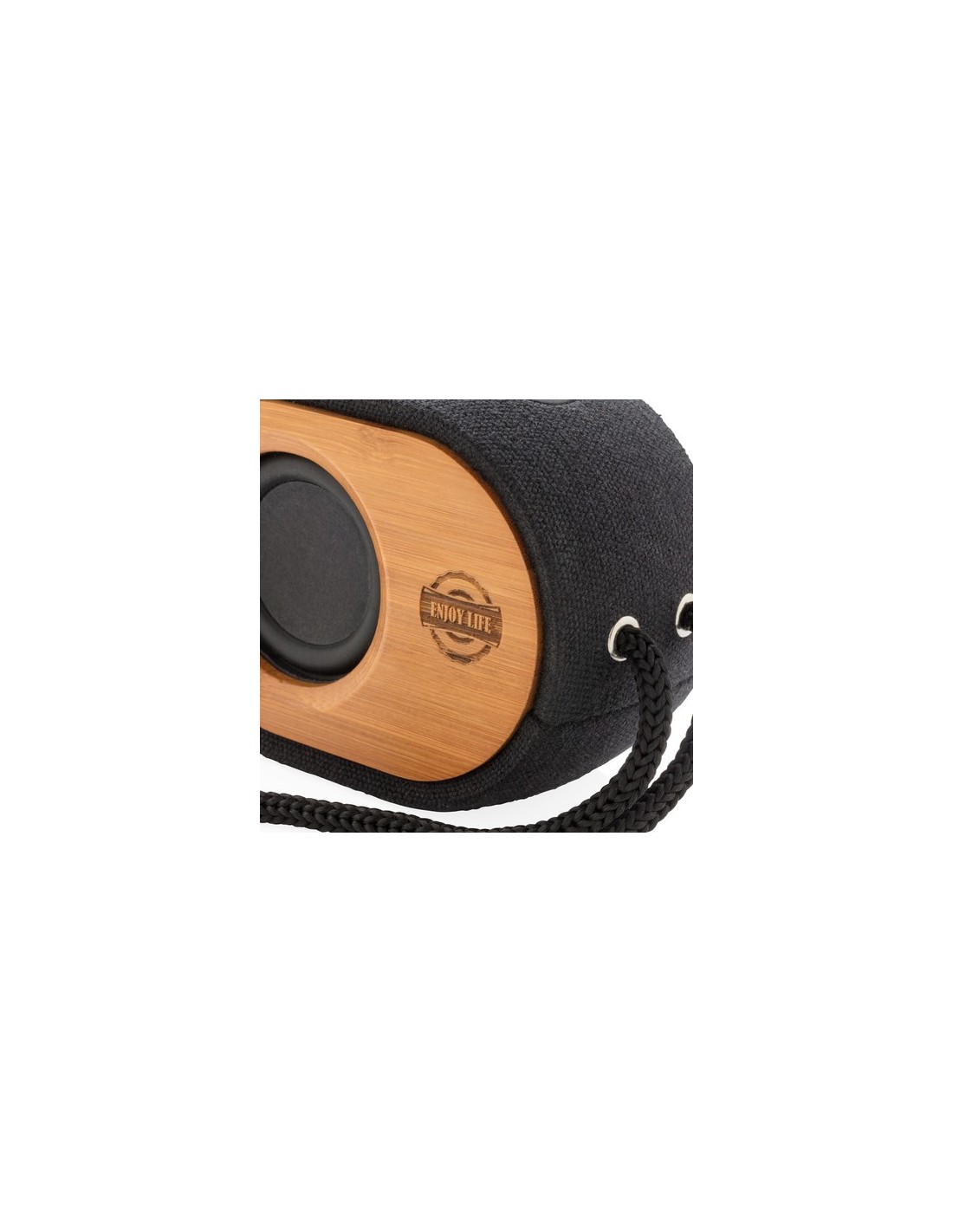 Sonido natural de un altavoz natural. Este altavoz sostenible combina una experiencia de sonido increíble con un diseño elegante hecho de materiales duraderos y responsables. La carcasa está hecha de bambú duradero y la tela hecha de una mezcla de algodón orgánico en un 30%, cáñamo 40% y 30% de PET reciclado. El altavoz de 5W utiliza componentes de alta calidad para garantizar un uso duradero del artículo. La batería de 1.500 mAh reproduce hasta 8 horas con una sola carga. Utiliza BT 4.2 para una conexión súper suave. Dispone de una distancia de operación de hasta 10 metros. Presentado en bolsa 100% sin plástico. Diseño Registrado® Material : Bambú, Poliéster Recycled Content Percent : 0 Conforme directiva bateria 2006/66EC, Conforme directiva equipamientos Radio y Telecomunicaciones 2014/53/EU, Conforme directiva de sustancias peligrosas 2011/65/EC & 2015/863, Hoja de datos de seguridad del material disponible, Conforme PAHS content in Reach & ZEK 01-4-08, Conforme directiva SVHC 1907/2006/EC, Conforme directiva Battery transportation safety UN38.3, Certificado para transporte aéreo, Conforme directiva seguridad baterias Alcalinas EN62133, Libre de parafinas cloradas de cadena corta y media. WEEE Battery : 2 Li-ion - 18650 - 46,4 g. Packaging : Caja de regalo All print codes : Pad Print,CO2 Engraving 2 - Print code default : Tampografía - parte frontal del artículo - 25 x 40 mm - max color : 5 Social Audits : BSCI Total CO2 emissions : 2,35.