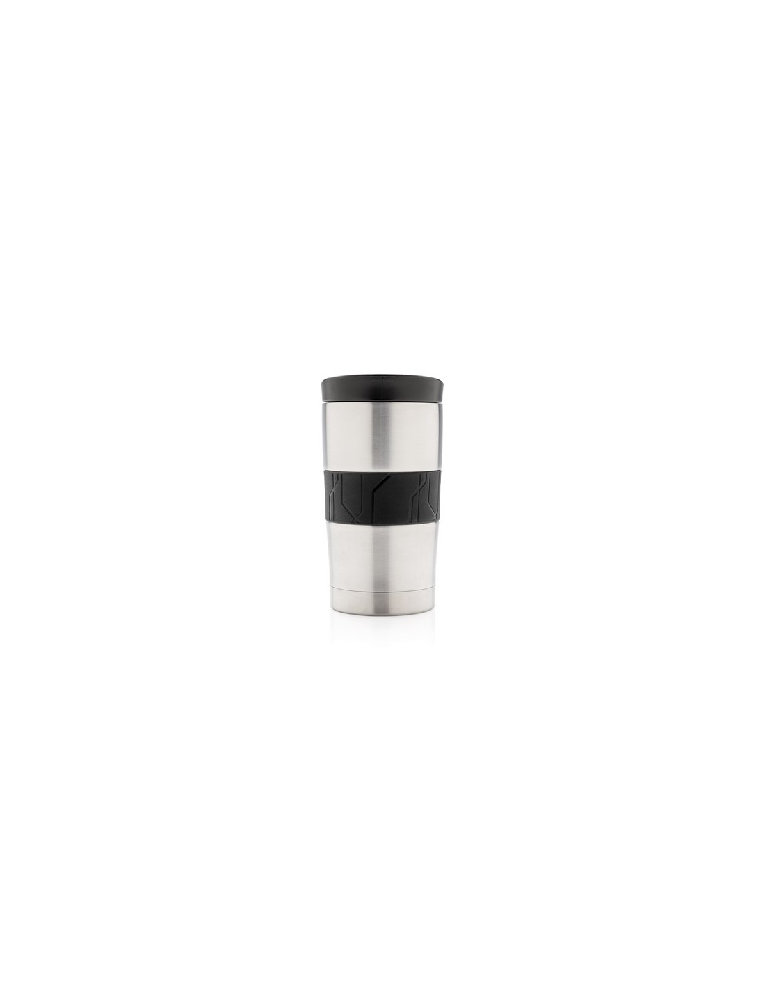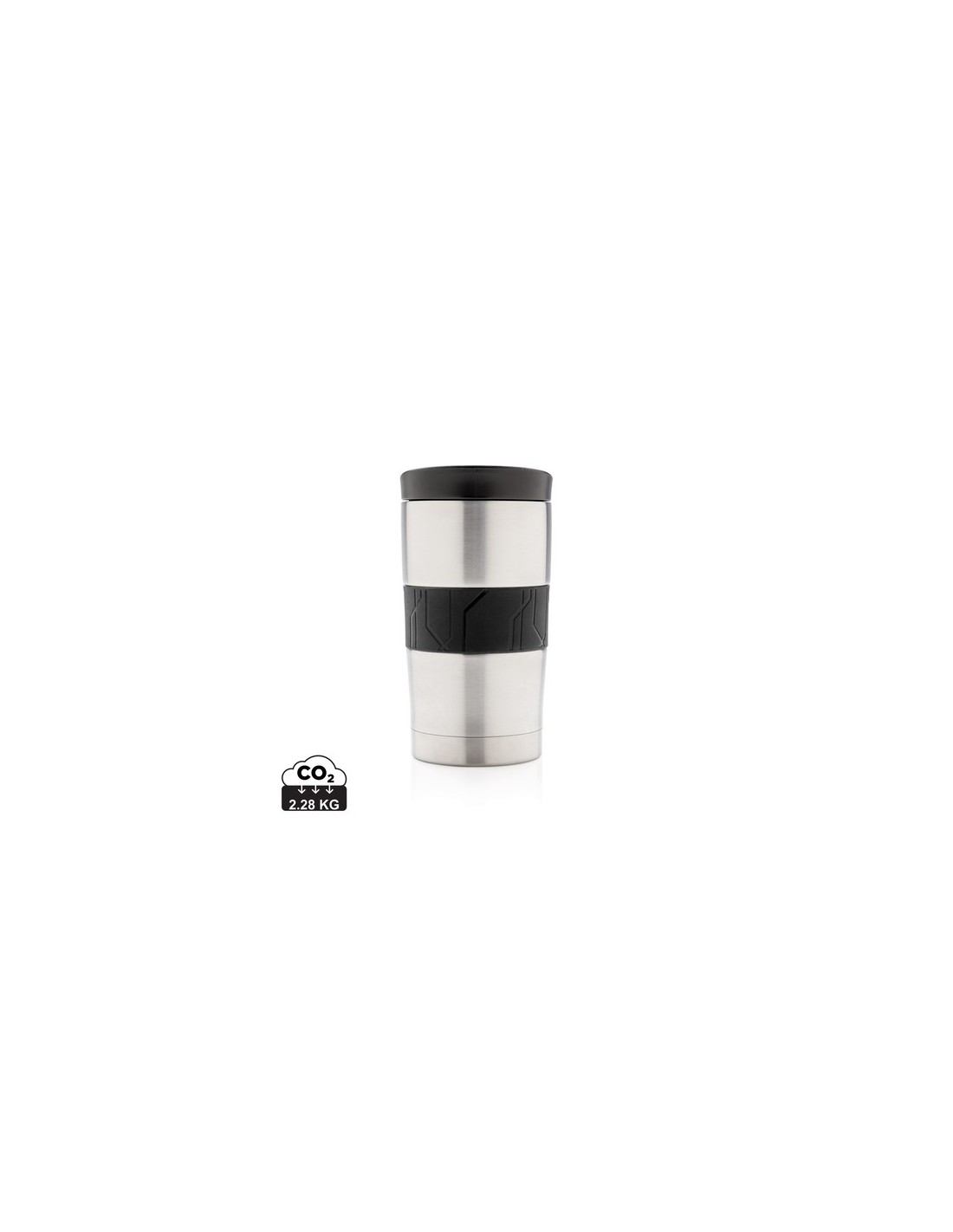 Taza antigoteo al vacío hecha de doble pared 304 de acero inoxidable con empuñadura de silicona y tapa deslizante. Apta para lavavajillas y adecuada para la mayoría de las máquinas de café. Fácil de beber con 1 mano. Contenido: 300ml. Material : Acero inoxidable, Silicona Recycled Content Percent : 0 Sin materiales Bisphenol A, Conforme legislación alimentos Alemania, Conforme directiva SVHC 1907/2006/EC, Libre de parafinas cloradas de cadena corta y media. Packaging : Caja de regalo All print codes : Pad Print Drinkware,SilkScreen Round,Laser Engraving 3 - Print code default : Tampografía - parte frontal/alta del artículo - 30 x 25 mm - max color : 5 Social Audits : SMETA Total CO2 emissions : 2,28.