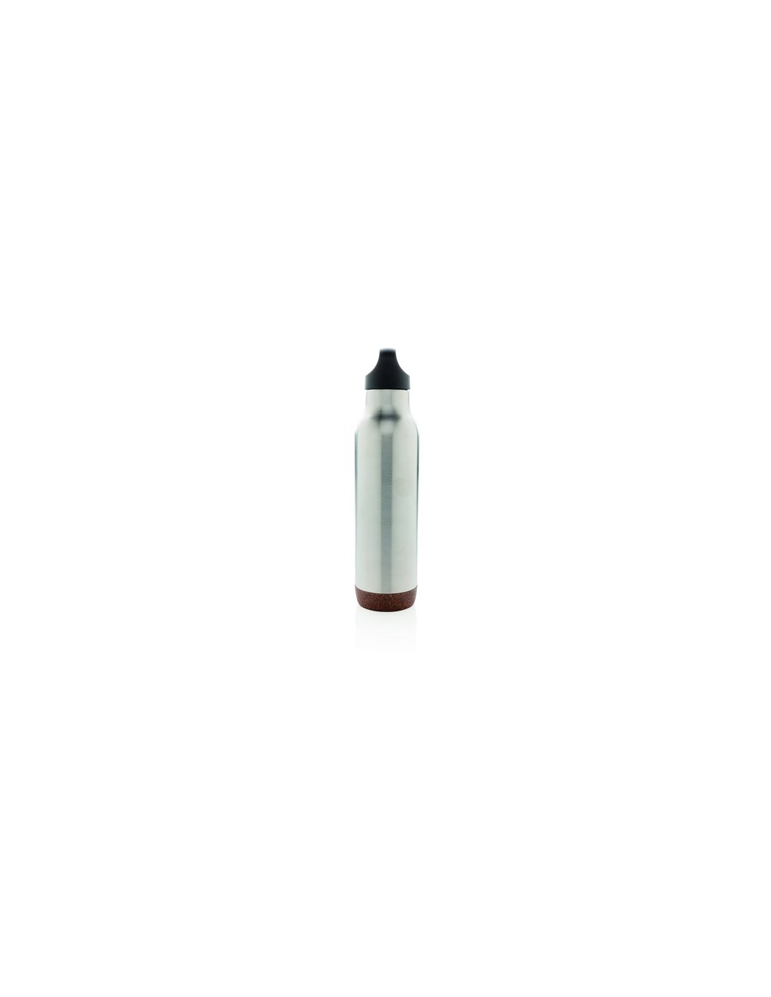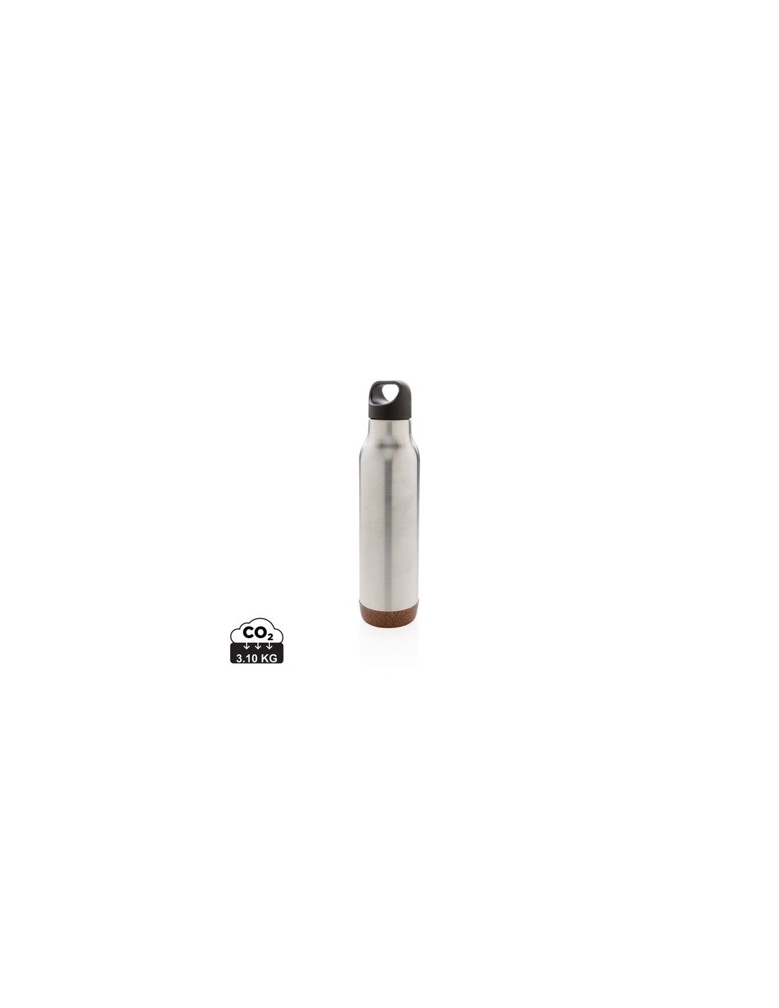 Botella antigoteo aislado al vacío de 304 SS duradero en el interior y 201 en el exterior. Detalle de corcho único en la parte inferior. Mantén tus bebidas calientes durante 5 horas y frías hasta 15 horas. Contenido: 600ml. Material : Acero inoxidable, PP Recycled Content Percent : 0 Sin materiales Bisphenol A, Conforme directiva SVHC 1907/2006/EC, Conforme legislación alimentos Alemania Packaging : Bolsa de plástico y caja individual All print codes : Pad Print Drinkware,Laser Engraving 3,Digital round 360-2,SilkScreen Round - Print code default : Tampografía - parte frontal en medio - 25 x 80 mm - max color : 5 Total CO2 emissions : 3,1.