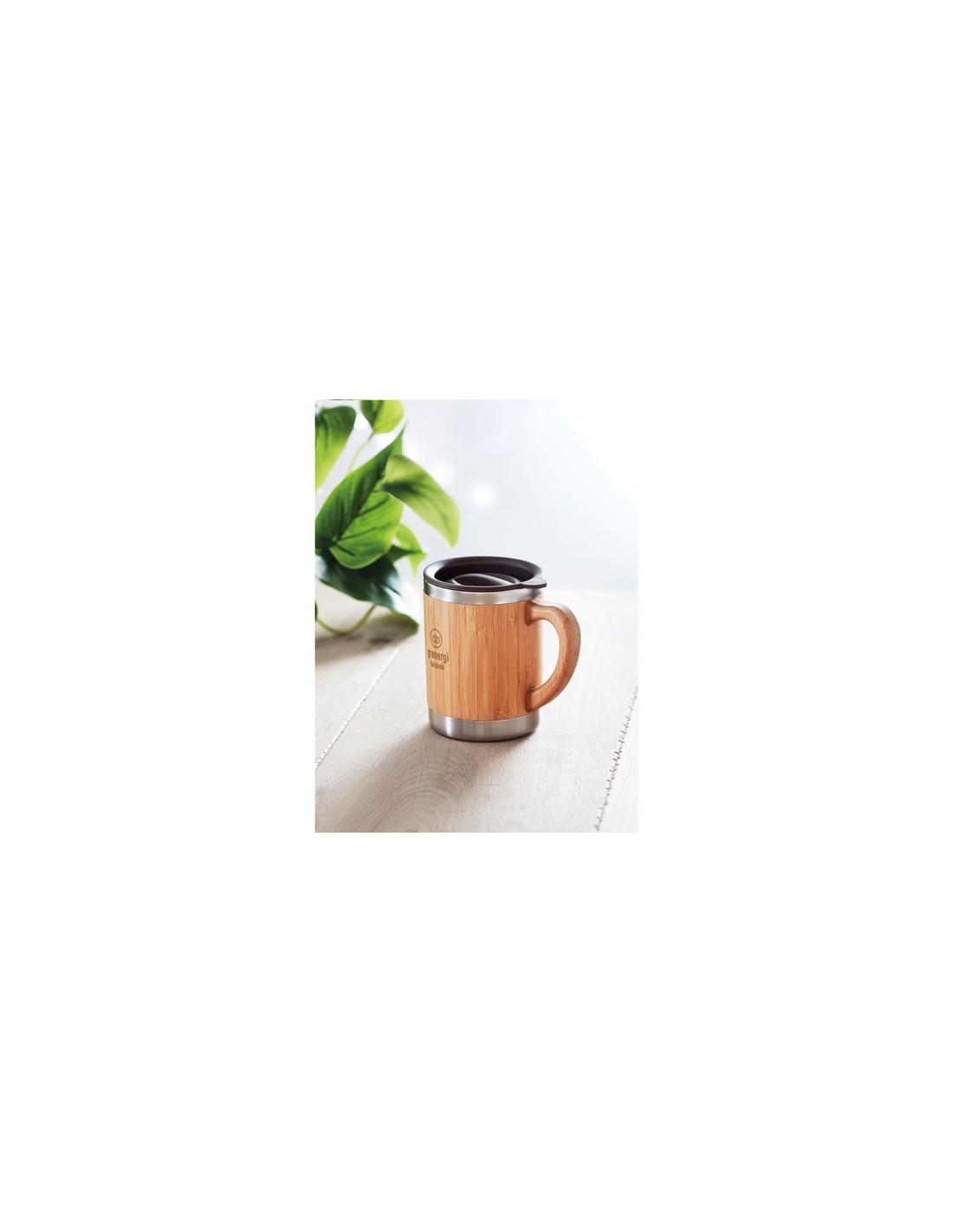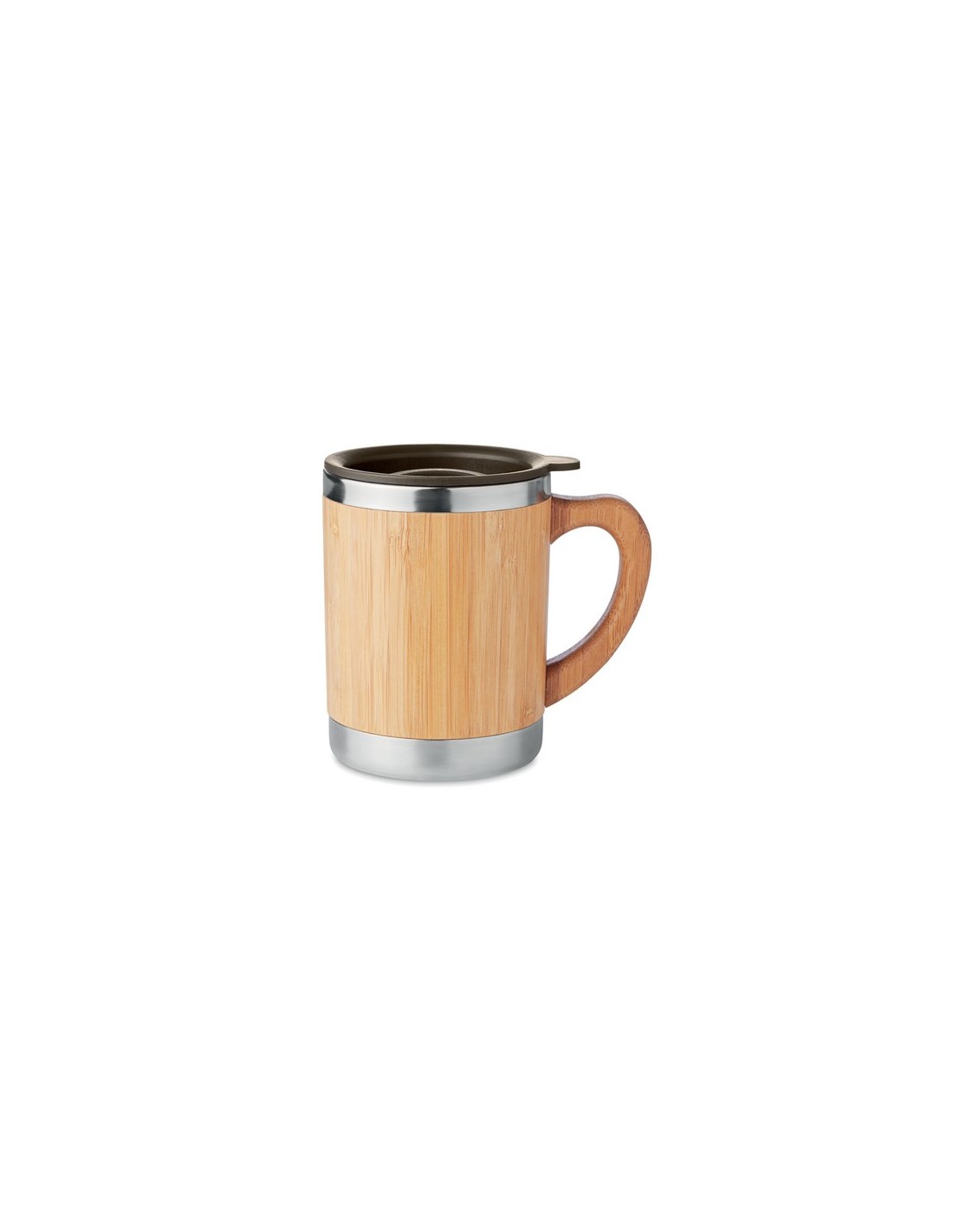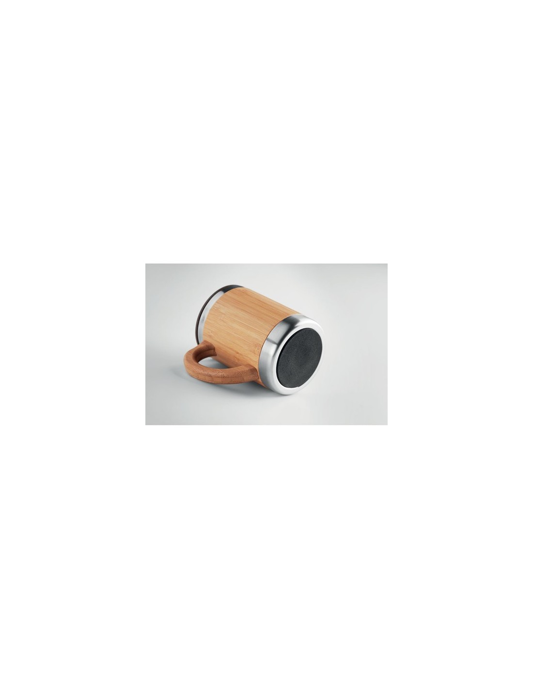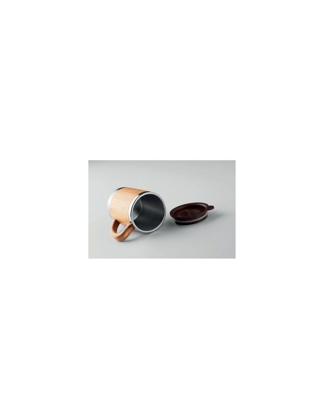 Taza de acero inoxidable de doble capa con carcasa de bambú. Capacidad 300 ml. El bambú es material natural, el color del articulo puede variar.