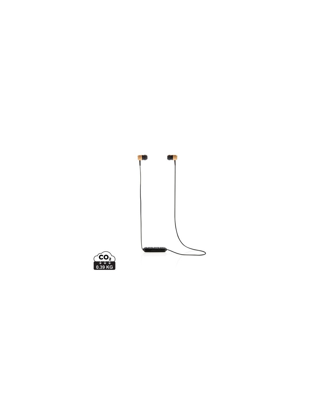 Auriculares inalámbricos Eco presentados en funda ECO. Los auriculares de bambú se adaptan perfectamente para escuchar tu música favorita de manera sostenible. Los auriculares tienen extremos magnéticos para colocarlos juntos cuando no se usan. Con una batería de 55 mah que permite un tiempo de reproducción de hasta 3 horas y volver a cargar en 1 hora. Con BT 5.0 para una conexión suave y una distancia de operación de hasta 10 metros. Incluye almohadillas de 3 tamaños. Material : Bambú, ABS Recycled Content Percent : 0 Conforme directiva bateria 2006/66EC, Conforme directiva equipamientos Radio y Telecomunicaciones 2014/53/EU, Conforme directiva de sustancias peligrosas 2011/65/EC & 2015/863, Hoja de datos de seguridad del material disponible, Conforme PAHS content in Reach & ZEK 01-4-08, Conforme directiva SVHC 1907/2006/EC, Conforme directiva Battery transportation safety UN38.3, Certificado para transporte aéreo, Conforme directiva seguridad baterias Alcalinas EN62133, Libre de parafinas cloradas de cadena corta y media. WEEE Battery : 1 Li-poli - 350926 - 1,5 g. Packaging : Caja de regalo All print codes : Screen Transfer OS,Digital Transfer OS,Pad Print,Doming - Print code default : Serigrafía por Transferencia - funda - 50 x 70 mm - max color : 6 Social Audits : BSCI Total CO2 emissions : 0,39.
