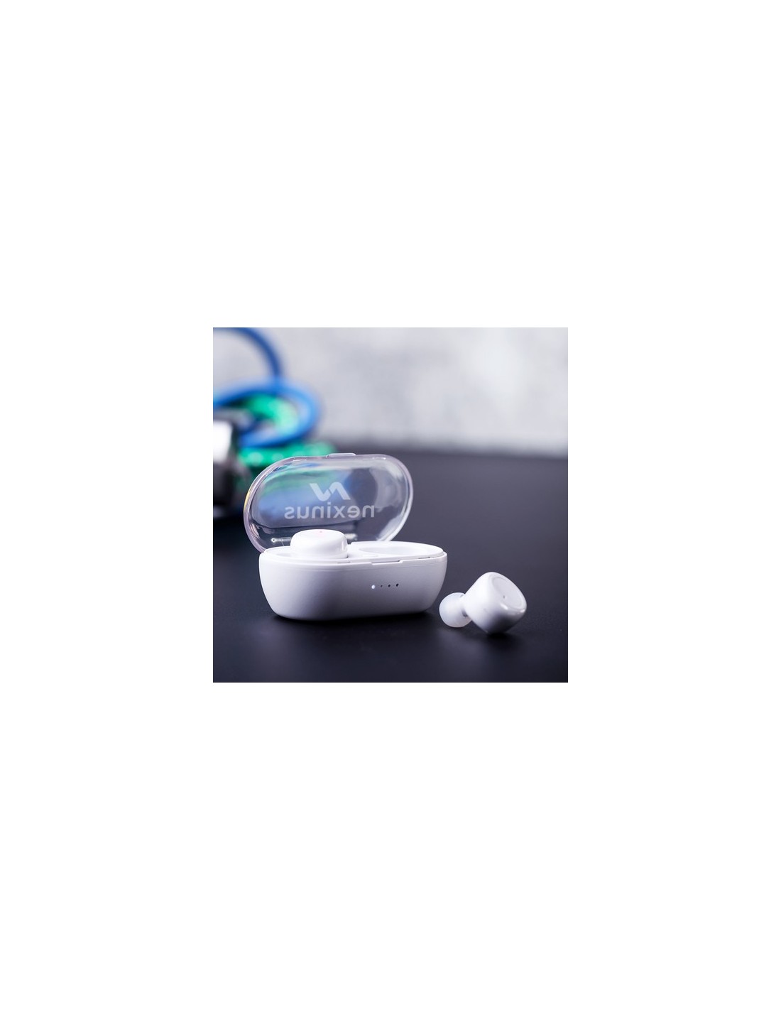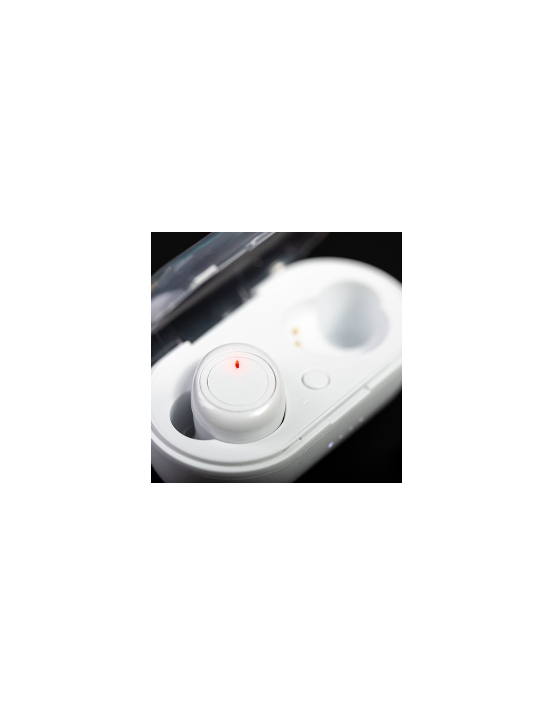 Auriculares intraurales de conexión Bluetooth 5.0 y diseño minimalista en elegante color blanco. De diseño ergonómico, incluyen panel de control integrado en en auricular, con estuche y base de carga a juego. Función manos libres y recargables, con cable micro USB incluido. Presentados en estuche individual de lujo con tapa transparente de bisagra. Presentados en atractiva caja de diseño. Conexión Bluetooth. Batería 50 mAh/ Base Carga 250 mAh